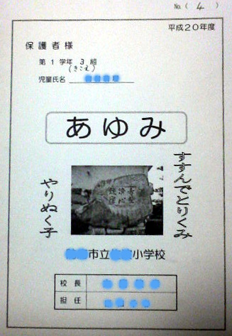 今日は学校で懇談会がありました。懇談と言っても、全校放送で校長先生のお話や生活指導の先生のお話を聞いた後、担任の先生から、夏休みの過ごし方や宿題についての説明を聞いて終わる、という感じでしたがその時、夏休み関係の書類と一緒に、通知表も配られたんです。ドキドキしながら開けてみると・・・・・・、おぉっ!!! 「できる」 ばっかりではないかぁ!!!話をよく聞くことができる、が 「がんばろう」 なのは仕方ないとして、ペコは1学期間、かなり頑張っていたってことがとてもよく分かりました。。ホントにうれしいです・・・スタートラインは他の子供たちよりもずっと後ろだったのに、よく頑張ったなぁ・・・ペコを信じて、普通小学校へ入学させてよかったってようやく思うことができました。でもこれから先、学習内容が難しくなっていくとペコの負担も増していくと思うんです。ペコの状態を見ながら、聞こえの先生とも話し合って、ベストなやり方で学校生活を楽しく過ごしていけるように、私はこれからもしっかりサポートしていかないといけないなって改めて思いました懇談会が終わると、希望者だけ個人懇談に移ります。私は2日前に、先に相談させて頂いたので、このあとは聞こえの担任の先生との個人懇談をすることになっています。きこえの教室に移動して、ちょっとだけお話をしました。1学期のことでどうこう、という話はほとんどせず、(毎日の交換ノートで相談ができているので)主に、夏休みの学童保育について相談に乗っていただいていたんです夏休みは保育士の数が減って手薄になるので、ペコの安全面に不安が出ることから、どうしたらいいのか?ってことを少し相談しました。市の教育課の方にも相談したんですけど、市の予算の都合上、人数を増やすことはできないし、いろいろ制約があってボランティアさんを受け入れることもできない、ということなので、、結局、ペコのおじいちゃんに助けてもらうことになり、朝は車で連れてきてもらって、帰りはお昼前に連れて帰ってもらう、ということになりました。夏休みでもメリハリのついた毎日を送ってもらいたいと思っていたので、本当は学童も4時まで利用したかったんですけど、安全第一なので仕方がないですね。。そういうわけで、入学以降、いろいろありましたが、、私なりに1学期間を振り返ってみました1学期の中頃までは、一体どうしたらよいのやら、、とかなり不安になることが多かったのですが、聞こえの先生が毎日詳しく学習記録を付けてくださるおかげで、学校で何を学んでどんなことがあったのかが、手に取るように分かりましたし、2日前にプール参観へ行ったときには、何と手話を使って通訳してくださっていたんです。私の意見を取り入れてくださっていることが分かって、本当にホッとしました・・・。きこえの先生は、出来ないこと、わからないことを、「やりましょう。」と安請け合いせずに、「できません。」とハッキリおっしゃる先生でしたから、私もつい、何じゃとぉ~~!?やってみる前から出来ないだなんてと思うことも多かったのですが、逆に責任を持って取り組んでくださっているからこそのセリフだったのかもしれないなと思えるようになりました。よっしゃ~2学期に向けて、夏休みの学習も頑張るぞ・・・私が頑張っても仕方がないんですけど、、読書感想文を原稿用紙2枚分、、、チャレンジさせるべきかさせないべきか、かなり悩んでます。ちょうど家に学校推薦図書があったので、書かせてみたいな~とは思っていますが・・・。原稿用紙2枚分って、1年生にとっては結構ヘビーですよね・・・