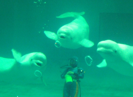 5日の日曜日に、しまね海洋館アクアスへ行って来ました。こちらは、シロイルカのバブルリングのショーが有名なんですけど、3頭のうち2頭が妊娠中で産休に入るため、もうしばらく見れなくなるって思ったので、ペコと一緒に急いで観に行きましたも~ね、すごく可愛かったです心から和みました~3頭合わせてのバブルリング。ポワワ~ンってバッチリ撮りましたよ~では、どうぞ~~