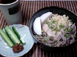 うぅぅ・・・ さっき目が覚めた。釣りから帰ってきて18時ごろから一眠りしようと思ったんだけど、気がついたら22時だった。4時間も気を失っていたよ。腹も減ったのでなにか食いたいが、こんな時間なので簡単に軽めにしよう。そばがあったのでこれを食おうと思うが、どうも温そばの気分ではなかった。長芋も少し残っていることだし、冷しのとろろぶっかけそばにして食うよ。揚げ玉とかまぼこも乗せる。ちなみに、釣りのほうは、朝、遊漁券を買うときに販売所の親父に「今年はもう入れた(放流した)のか?」と聞いたら、「入れたんじゃないか・・・」という心もとない返事。まだ入れていないな? 最近3・4月になって入れる河川が多いんだよね。多分そっちの方が定着率がいいのだろう。よって、釣れる魚もサイズの割には銀化しかかっているやつばかり。越冬山女だな。 「♪ひゅるり~ ひゅるりらら~」