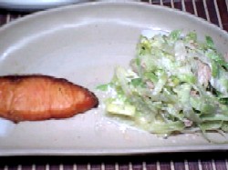 昨晩がえらくあっさりだったので、今夜はこってり行こうと思う。豚肉(焼肉用)とキャベツを買って来て、炒めて上から豆板醤をかける。さしずめかねしろ風の焼肉だな。あの美味しさは家庭では再現出来んけれど・・・味噌汁は豆腐Only。最後の長芋をとろろにして食うよ。う~ん、これを書いていてかねしろに行きたくなったってことは、俺もまだまだ食欲旺盛なヤングだな。
