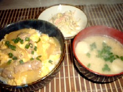 昨日親切な人が「明日は警察24時がある」とメールで教えてくれた。え?そうなの・・・ 俺のアンテナには引っかからなかったんだよね。おかげで見逃すことなく堪能出来た。ありがとう、親切な人。って身内なんだけどね。そういうわけで、俺は今夜一生懸命テレビを見なくてはならないので、晩飯はテレビが始まる前に下ごしらえを終わらせて、終わってから簡単に作る。困った時の親子丼と豆腐と麩の味噌汁、そして昨日の残りのサラダだ。親子丼って俺のブログの初日のメニューなんだよね。困ったら初心に戻って簡単で失敗しない親子丼を作るべし。どうでもいいけれど、「豆腐と麩の味噌汁」っていい難くない?