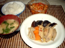 収穫したシイタケがもう少し残っている。昨日書いたとおり、本当は昨日も煮しめが頭に浮かんでいたんだよね。手羽中も残っていることだし、今夜はシイタケと手羽中で煮しめにしてみた。ニンジンとエノキも微妙に残っているから入れる。 世間から見れば地味な晩飯だろうけれど、なにせこれは自家製シイタケだからね。味噌汁は久しぶりに南関あげを買ってきた。ちなみに右のキュウリとトマトは今日のアテ。別にこんな地味なアテを写さなくてもよかったんだけど、きっと晩飯の写真だけでは野菜が足りないと指摘されると思ったものだから・・・う~ん、ホークスはとても開幕3連勝中とは思えない試合してるし、今夜は21時から24時だし(なんのこっちゃ?)、忙しいのでこの辺で。