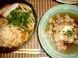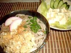 まあ、いつも昼くらいから「冷蔵庫に何が残っていたかな?」と毎日考えるわけだよ。徐々に気持ちを盛り上げていかないと、惣菜や弁当でもいいかとなっちゃうもんね。今夜は、冷蔵庫に豆腐と消費期限が切れた刻み油揚げがあったから、これで味噌汁を作って・・・ なんて考えていたわけなんだけど、夕方急に仕事が入って帰りが少し遅くなった。そういうわけで、ご飯を炊いてる暇はないので、刻み油揚げは甘辛く煮てそばに乗せる。豆腐はレタスに乗せてゴマダレで食う。なんか予想外に歯も痛いし、今夜はこんなもので勘弁してやるか。