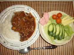 今朝、カップスープを作ろうと思ってストッカーを漁ったら、カレーのルゥが半分出てきた。最近カレーなんて作っていないもんな。これいつのだっけ?とりあえず、半分で1パックだから未開封だし、消費期限は1年以上先だ。今夜はこれでカレーを作ろう。牛肉とニンジン・タマネギ・ニンニクのみ。なんか、せっかくこの間サフランを買ったので、サフランライスを炊いてみたが、マダラになったよ。コールスローもキャベツとタマネギ・ニンジンそしてニンニク。1玉380円の高級青森産ニンニクを買ったんだよね。(普段は同じ青森産でも280円くらい)びっくりしたよ。ニンニクの外皮は乾燥しているのが当たり前だと思っていたが、しっとりと水分があってしかも皮が厚い。う~ん、今植えている作物が終わったら、次はニンニク栽培だな。カレーライスとハリー・レイスは全然別物だが、カリー・ライスとハリー・レイスはちょっと似ている?