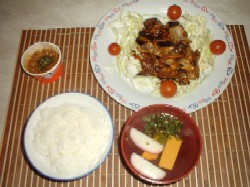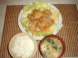 自分で育てている野菜は店で買う気がしないんだよね。そういうわけで最近、トマト・キュウリ・トウモロコシ・パプリカ(&ピーマン)・ナス・オクラは買わない。(一応オクラも何とかなるんじゃないかと、まだ粘っている。)でもよく考えたら、ナスとオクラはまだ全然成長していないので、ナスはもう1回2回買ってもいいんじゃないかというわけで、ナスと豚バラの味噌炒めを作りたかったんだけど、ニンジンとかマッシュールームとか出てきたので、ついでに一緒に入れた。もちろん味噌はまだ残っている「つけて味噌かけて味噌」。キャベツは炒めずに、千切りして下に敷いた。なんとなく吸い物の気分だったので、豆腐とカマボコの吸い物。今日のデザート