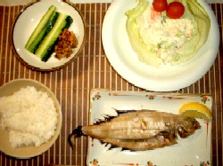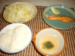 昼間少し暇があったので、弁当を買って洗濯がてら家に帰って来た。某最近名前が変わった弁当屋でシャケ弁を買ったんだけど、(シャケ弁なんてリンクしなくてもみんなわかるだろうし、「某」の意味がない・・・)結局、ホキのフライとチクワの揚げ物だけで昼飯を食ってしまい、ギンザケ(銀鮭)は食わなかった。う~ん、経済的。しかも帰りが少し遅くなってしまった。おかずを取っておいてよかったよ。レタスととろろを付ける。いや、マジで今夜は金が掛かっていない。