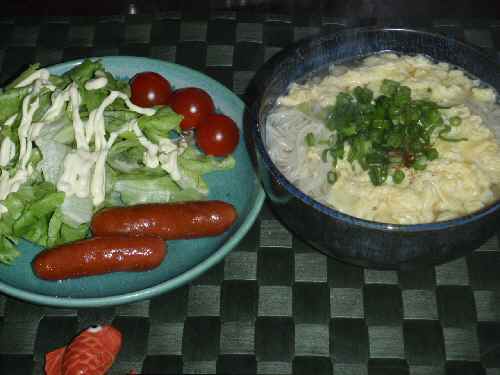 真冬に比べると昼間はだいぶん暖かくなってきた。今日はもう月末すぎて、仕事もあまり忙しくないので、昼からは、冬場はさぼっていた自転車に乗って仕事をする。風は冷たかったが、走りだせばカーデガン一枚でちょうどよく、手袋も用意したが必要なく、「こんな暖かな日は、晩飯は素麺でいいよな。」と思いながら自転車を走らせる。まあ、昼はそうでも、夜になると少し気温も下がってきたので、さすがに素麺ではなくにゅう麺にした。素麺2輪を湯掻いて、卵とじにゅう麺にする。ちぎりレタスとプチトマトのサラダに、ウィンナーを2本炒めて添えた。本来、ここにご飯を付けるはずだったが、どうもご飯までは必要なく、以上終了。晩飯は以上だが、昼にもらった回転焼(今川焼・大判焼・蜂楽饅頭その他)があるので、お茶を入れてほっこりと食う。俺的にこれは、上記のどれでもなく回転饅頭と呼ばれる。さあ、いよいよ明日は渓流解禁だ。ところが天気があまりよくないんだよね。数日前には明後日の昼から崩れる予報だったのに、今はもう、明日の昼から降りそうだ。今年は新しい川(正確には久しぶりの川)を攻めたいと思っていたのだが、天気が悪いとなると、データがある(急な増水にも対応できる)行きつけの川がよさそうだ。ところで、昨夜フライベストのポケットに、いろいろ必要な物を詰め込もうとして、液状フロータント(具体的にはGink)がないことに気づいた。昨日、ニンフ用のマーカーを買いに行ったばかりなのに、Gink一本を買いに車を走らせる。ところで、フライベストに毎年セットするけれど、まだ一度も使ったことがないものがある。それは、助けを呼ぶ(自位置を知らせる)ためのホイッスルなんだよね。できれば今年も、そして永遠に使いたくはないと思いながら、ベストに貼りつける。一応、冬用寝袋(宿泊予約をするには雨のリスクが高すぎる)や、カップラーメンの用意もしたが、多分明日は日帰りになるだろう。