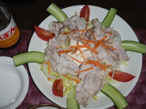 付き合わされた(割には楽しんでいるが)アグー豚のしゃぶしゃぶカットがあるので、今夜(日曜)は冷しゃぶにしようと一部を解凍していた。ところが、作り始める時間になって、冷にはちょっと寒いんじゃないかと気づく。そうは言っても、それで用意をしたので、今さら温には移行出来ない。春キャベツとオニスラを敷いて、キュウリとトマトを飾り、にんじんを散らす。味噌汁に使った豆腐が少し余ったので、一緒に乗せた。味ぽんを振ったが、さらにマヨネーズも使おう。後は豆腐の味噌汁と辛子明太子のみ。日曜日は結局一日雨だった。夕方歩いて実家まで行って、歩数だけは稼いだが、それ以外はすることもなく、久しぶりに自分のホームページを更新する。一応、メインとサブの2つあるのだが、両方とも作り込んでいたら、結局一日掛かりになってしまった。メインページの方は取材済みのネタが切れてしまっているんだよね。近場はもう取材しつくしたので(20年近く掛けてだが)、福山(広島県)あたりまで行かないとネタを拾えそうにないのだが、これこそが俺がやるべきWORKだから、動き出さなきゃ。