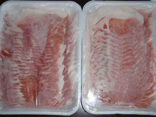 前にちょっと書いたが、肉の卸店に勤める後輩が、また仕入れをやりかぶったらしく、和牛のステーキ肉に続き、アグー豚1kg2,000円を付き合わされる。(正確には、写っている他に実家用にもう2パック頼んだので、計2kg。)しばらく前に受け取っていたが、寒の戻りで寒くなった今夜こそ、1パックの1/4(計算上は125g)を解凍して、豚しゃぶにしよう。アグー豚の他は、豆腐と白菜・春菊・だぶつき気味のエノキダケ。確かに柔らかくて(薄切りだから当たり前か)、脂が甘いような気がする。これがまた、本当に薄切りのしゃぶしゃぶカットなんだよね。他に使いようがないから、ひたすら「しゃぶ」るしかない。ところで、先日アグーを受け取った時に、後輩が俺の耳元で、和牛のヒレ(3,000円/kg)もやりかぶったんですよとささやく。いや、そんなには冷凍庫に入らんから。