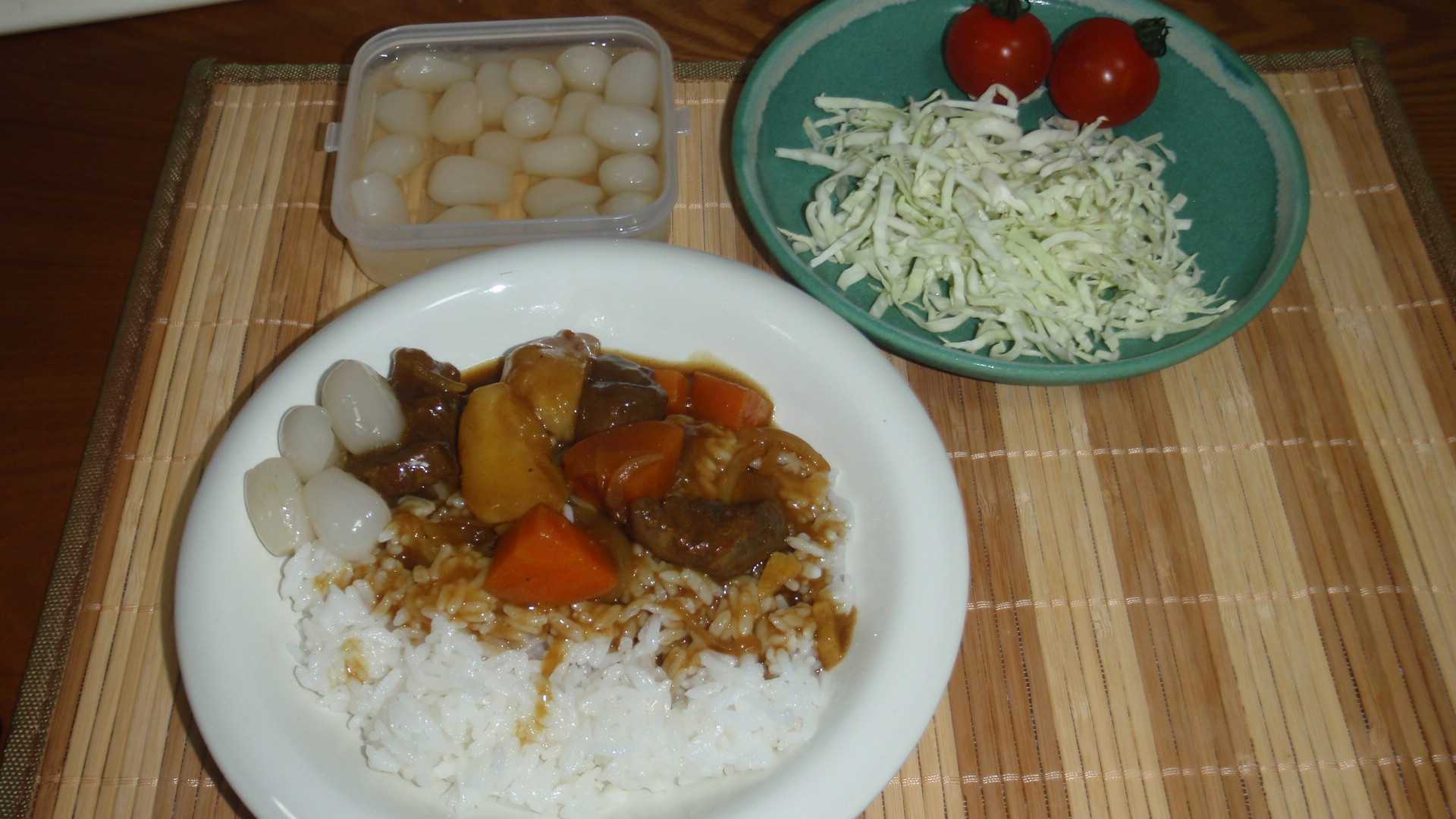 昨日の酒のアテにラッキョウが出てきたのでピンときた方もいらっしゃるかもしれないが、昨日は晩飯については書かなかったが、ジャガイモがもう1個残っていたのでカレーを作った。タマネギは薄く切って、飴色になるまで弱火で炒めて、牛肉とニンジンに香り付けのニンニクを加えてさらに炒めて、2皿分小分けパックのカレールーを使い、指定の400ccの水で煮込む。2皿分のはずなので、昨日一杯食べて、今夜も一杯食べて終了のはずだが、一食のご飯の量が少ないのか、丸一杯分のカレールーが残ってしまった。キャベツの千切りにプチトマトのサラダを添える。本来ならば夏のキャンプについての打ち合わせが始まっている時期だが、まだ確定はしていないが今年も中止になりそうだ。子供は重症化しないからいいのだろうが、引率の方がね。俺の人生でこ団体のキャンプは、小学校1年の時から28歳(ウソ)の今まで、高校受験の1年以外は全部参加だった。まさか2年も続けて中止になるとは・・・