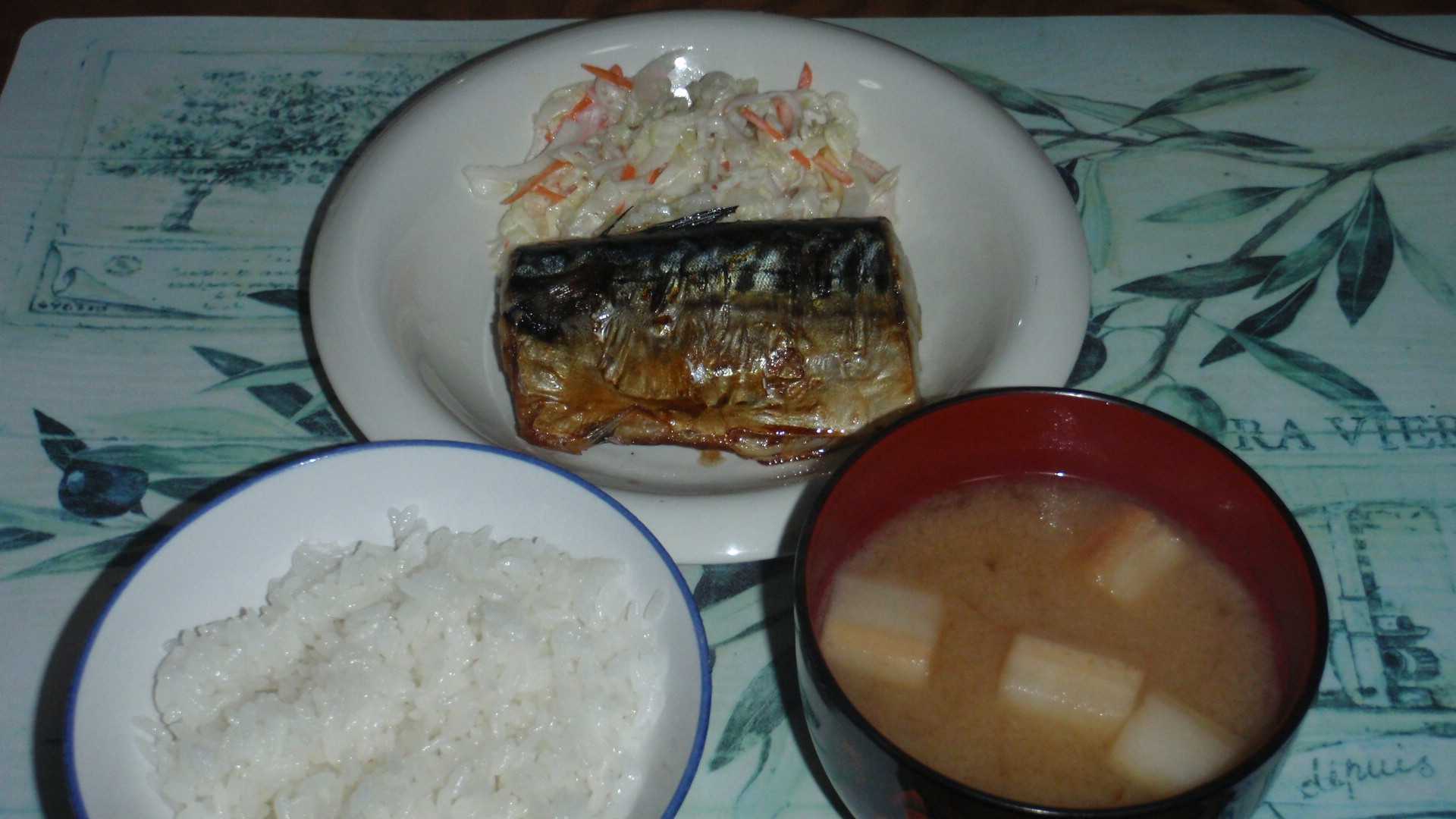今日はなんのプランもないままスーパーに行き、店内を2周ほど見て回った。その結果、魚にしようと思ったのだが、スーパーの鮮魚コーナーには最低でも2切れ入りの切り身しかなかった。それを買ってしまえば明日のメニューまで決まるので楽っちゃ楽なのだが、一切れ・一枚入りを探したら干物しかなくて、干しカレイ・塩鮭・塩サバの3択だったが、今夜は塩サバを買う。魚焼きグリルを出すほどのことかなと考えたけれど、フライパンで焼くと縁の部分が焼けずに、蒸し焼きとして火は通るのだろうが、皮目がパリッとしないんだよね。というわけで、後始末を考えたら若干おっくうになりながら魚焼きグリルで焼き、昨日作ったかにかまサラダを添える。ここにトマトでも飾ろうと、スーパーの野菜コーナーでトマトを見たら一玉198円もした。数日前まで98円程度だったのに。たぶん、長雨のせいで野菜の値段はしばらく騰がるんだろうね。一過性のものならばいいけれど、米とか秋の果物とか、今の時期の日照が大切だからね。そんな話は何も関係なく、今夜も麩の味噌汁。この塩サバは脂が乗って美味かった。=魚焼きグリルの後片付けが大変ってこと。(さすがに明日の朝には残したくなく、今夜すでに洗い終えた。)