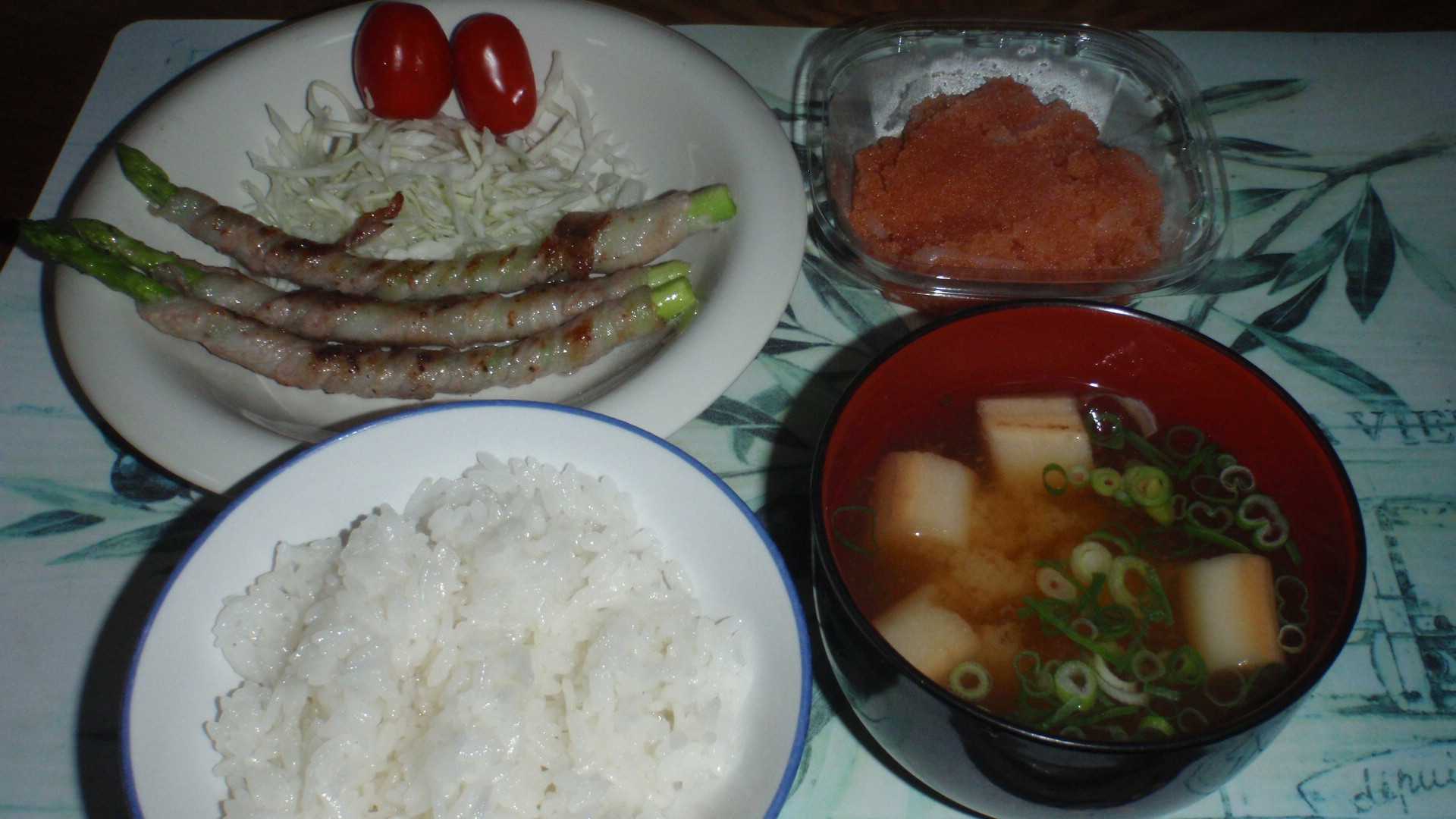 今朝は夜明け前からスマホの警報が鳴るくらいの大雨だったが、その雨も昼過ぎには止むとのことだった。今夜は今週3回目を走りに行くが、なんか雨が降りそうな雲だなと思っていた。案の定10Km過ぎで結構激しい雨が降りだす。夜の雨ってドライバーから歩行者(ランナー)が見えないんだよね。危ないので途中ショートカットして、今日は13Kmで勘弁してやる。今週は月曜に15Km・水曜に14Km走っていたが、月曜の+1Kmはよく考えたらまだ8月のことだったので、今週の記録には合算できても、今月のノルマには加算できない。そういうわけで、今日は13Kmしか走らなかったが、今週は15+14+13で週間42Kmはクリアした。さて、昨日のお好み焼き用に買った豚バラ肉が余っていたので、昼飯を買いに行ったついでにアスパラガスを買って来た。アスパラガスに豚バラ肉を巻くが、長さが合わなかったので、豚バラ肉2枚で3本のアスパラを巻く。豚バラ肉はもう一枚残っていたし、アスパラはもう数本あるが、アスパラ1本に豚バラ1枚は多くて、量が微妙なので、今日は3本で勘弁しといてやる。キャベツの千切りを作ったが、走った後にはそれほど食えそうになく、かなりの量を明日に回した。麩の味噌汁を作り、冷凍していたイカ明太を昼から解凍していたので添える。タイトルは、「アスパラの豚バラ巻き」なのか「豚バラのアスパラ巻き」なのか迷ったんだよね。どちらも間違っていないような気がする。酔っぱらった頭でしばらく考えた結果、「アスパラを豚バラ巻き」ならば、どう解釈しても間違えようがないかなと。