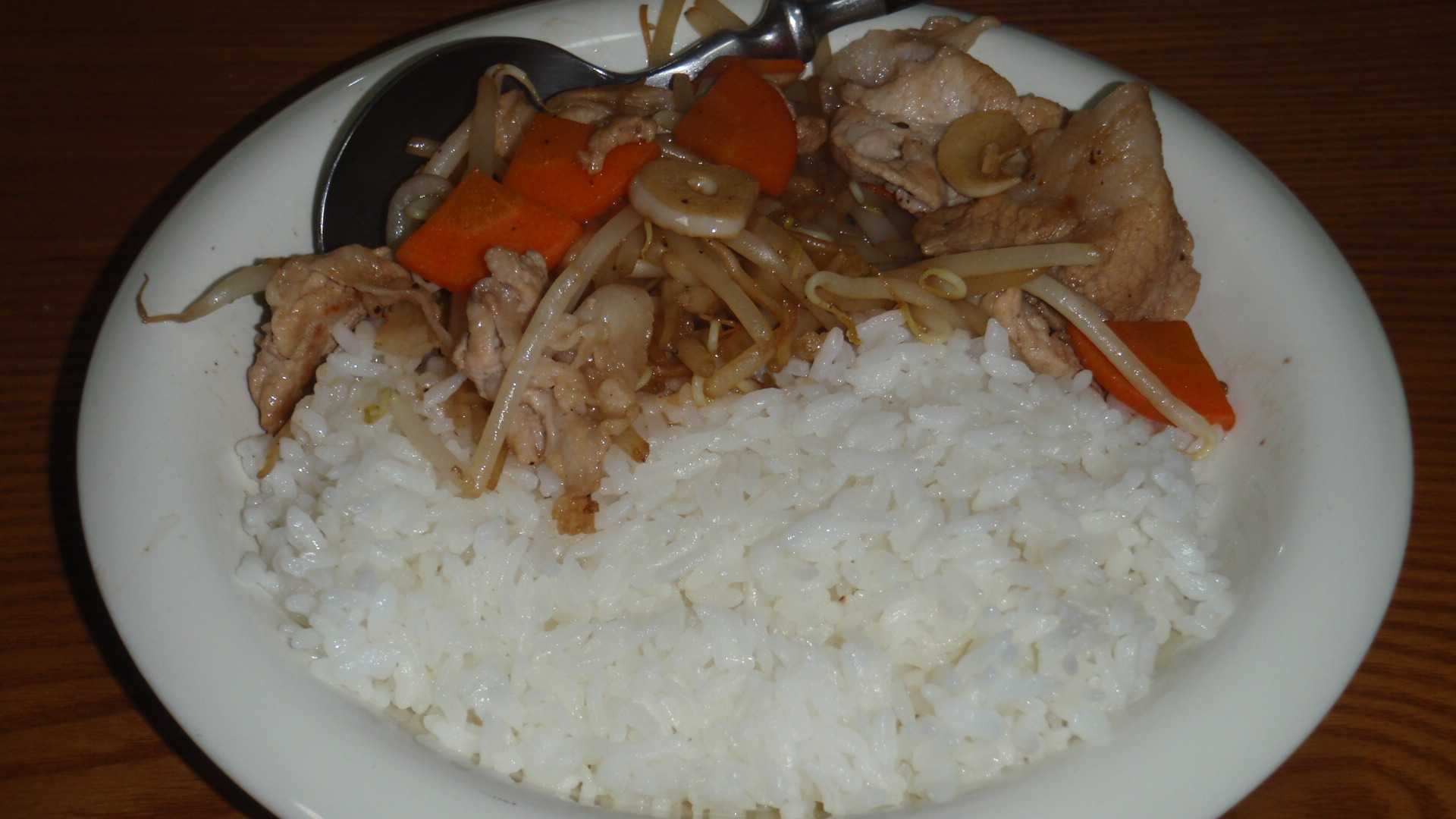 今週は火曜日から走り始めたので、今日21Kmを走って今週のノルマを達成する。いつもは21kmを走る前は気が重くて、走り出しても1~2kmくらいは、とても21kmも走れないやと思っている(5~6kmを過ぎると楽になる)が、今週は火曜日に25kmを走っているので、4kmも少なくていいんだと気が楽だった(と思い込む)。さて、ちゃんぽんを食べたくて、ちゃんぽん麺を始めとする食材を買い求めてきたが、今夜は昨日炊いた冷蔵ご飯があるので、豚肉とニンジン・ニンニクにもやしを炒めて、粗挽きコショウと減塩しょう油で味を整えて、面倒くさいのでレンチンしたご飯とワンプレートに盛る。