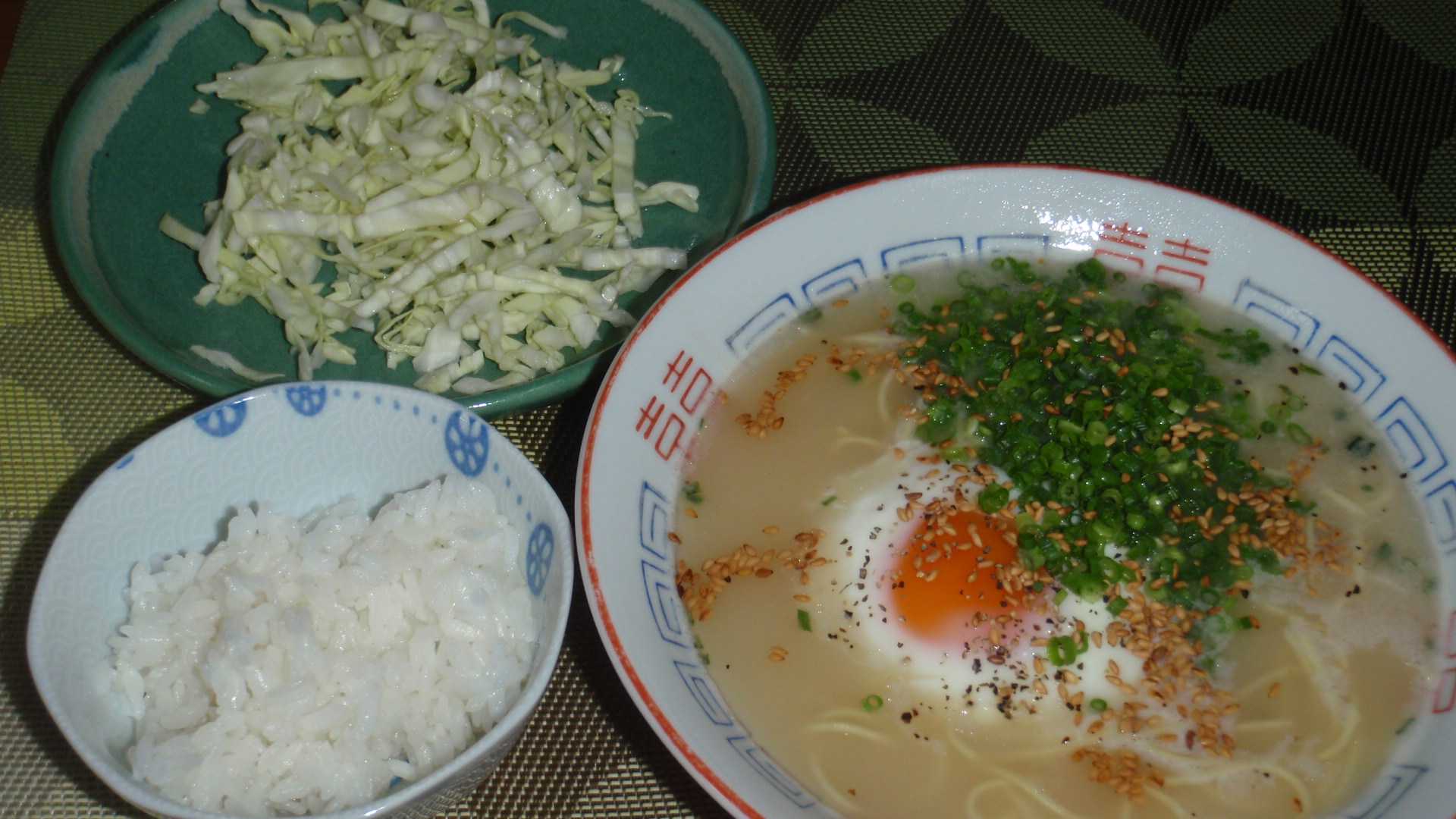 昨日書いたように、今日はどうしても走らなければならない。昨日に引き続き今朝も寒くて、午前中の気温3℃しかない中を、仕方がないから着替えて走りに行く。今週は12Km残りなのだが、それを走って月間154kmになる。計算上は来週も46Km走れば月間目標の200kmにちょうどなのだが、年末最終週は仕事も天候もどうなるかわからないので、なるべくならば積み増しておきたい。そういうわけで、今日は17Kmを走って来たので、月間目標の200kmまで残り41kmになった。来週はもう週に46kmにこだわらずに、月間200kmをクリアすることを優先しよう。そのための今日5km余分に走ったんだもん。さて、午前中に街を走っている時から、洋菓子店には警備員さんが立ち、路上に渋滞が起きていた。そこで初めて今日がクリスマスイブであることを知る。そんなケーキ屋やチキン屋の前に行列が出来る日に、専門店でラーメンを食うならまだしも、乾麺のインスタントラーメンを食わなくてもいいと思うのだが、午前中走っている時から、今夜は一食分残っていたマルタイ棒ラーメンを食うと固く心に決めていた。減塩中の俺にとって優しいのがマルタイ棒ラーメン。ただし、スープはほぼ飲めないけれど。昼飯を買いに行ったついでにカットネギだけ買って来て、いつも書いているが、半生麺・濃縮液状スープのインスタントラーメンには叉焼を浮かべたいが、乾麺・粉末スープのインスタントラーメンには半熟卵がよく似合う。ラーメンにはご飯(お米)も必要だ。昨日炊いた冷蔵ご飯が一膳分あるが、ちょっと多そうだったので、半分だけを小鉢に盛りキャベツの千切りを添える。タイトルは、どうもラーメンとアーメンを間違えたようだ。キリスト教の記念日だから仕方がない。