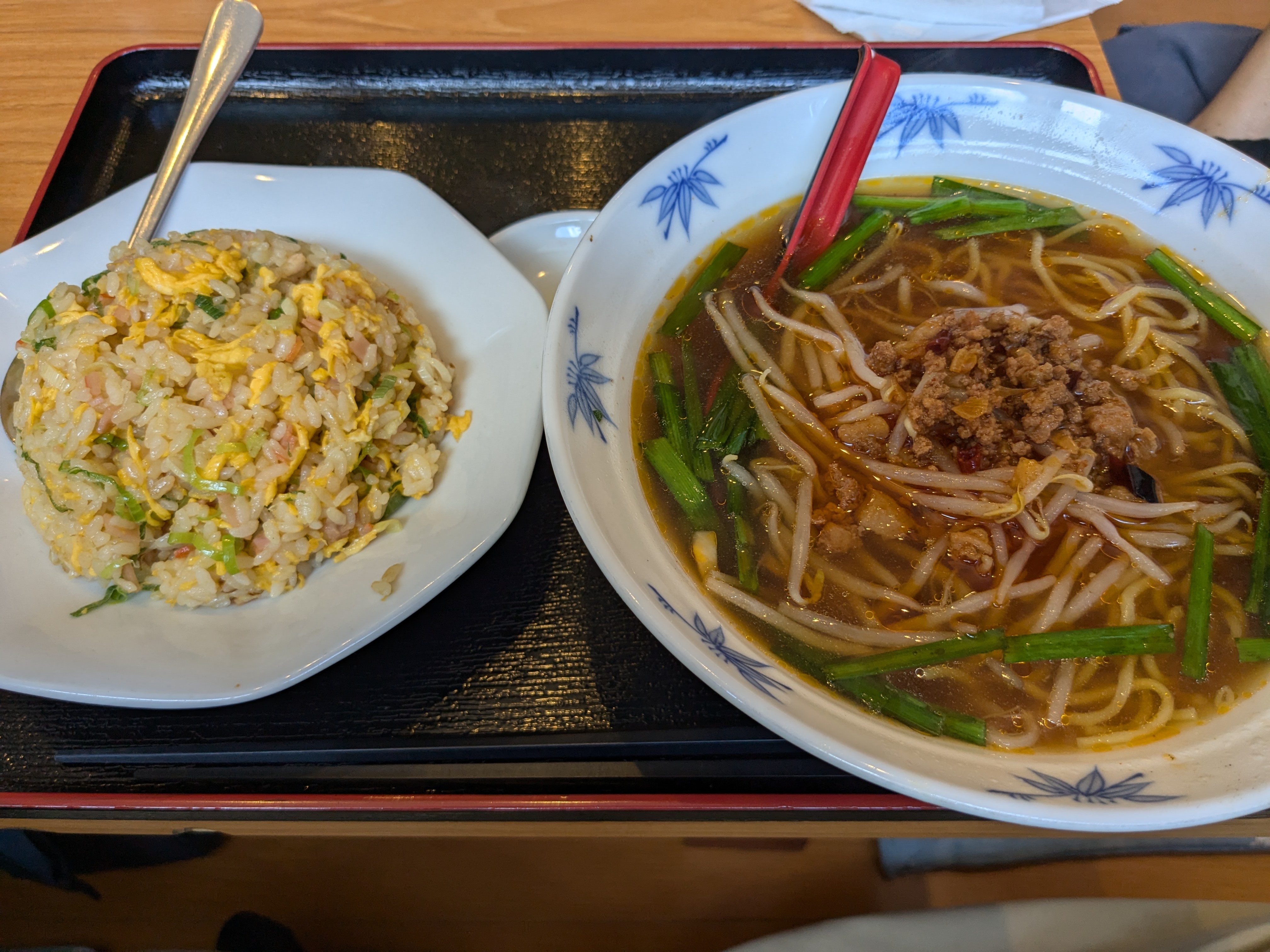 静岡では今日は気温40℃を記録したらしい。もちろんこちらも、昨日と変わらず灼熱の太陽の下での活動だった。お昼時間をぶっ通しで活動して、やっと13時過ぎに昼飯を食おうということになる。昨日は山中だったので調理パンを2個用意していったが、今日は街中だったので、たぶん昼飯を食いに行こうとの話になると思い、昼飯の用意はしていなかった。一応俺の減塩を心配していただいたが、こんなときのために普段は節制しているのだから、人と一緒の時は暴走可ということにしている。と言っても中華料理は特別塩分が高いイメージだけどね。(メニューに塩分が低そうな中華粥は見つけられなかった。見つけても多分お粥は食わないけれど。)調理場もホールのお姉さんも、なんなら客も本場の方で、中国語が飛び交う中華料理店だった。どうせ暴走するならば、この際なので派手に暴走しようと、台湾ラーメンと半炒飯のセット。ランチタイムだからなのかこれで税込み750円くらいだった。最近はオフィス街のランチが1,000円では収まらないとか、ラーメン一杯1.000円の壁だとかをニュースで聞くが、九州の物価は安いというか、この店が特別に物価が安いのかもしれない。半チャンと言いつつも2/3チャンくらいのボリュームで、ピリ辛の台湾ラーメンも美味かった。そんな、塩分もボリュームも暴走した日の晩飯は、地味に総菜のほうれん草の白和えをアテに酒を飲んでいる。