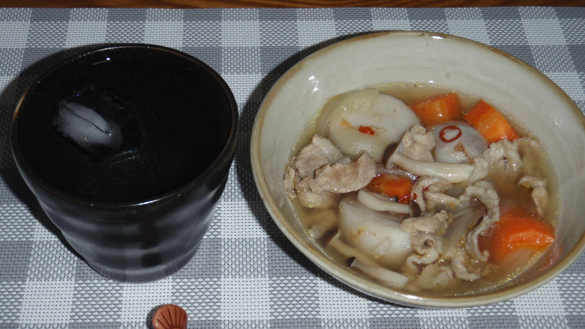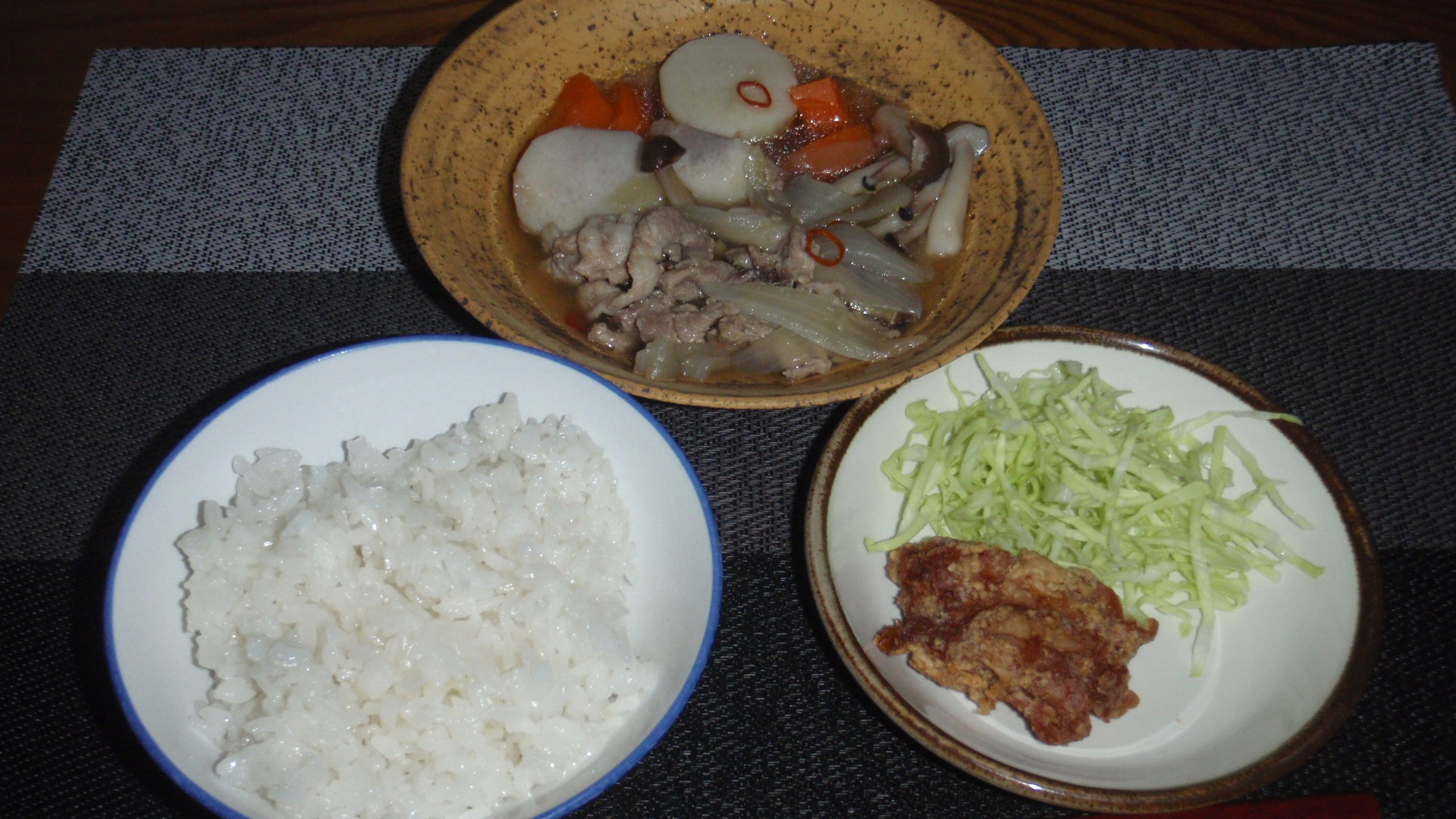 いつも書いているように、俺の頭は朝が一番クリアなので、朝起きてコーヒーを飲んでから7時までは、俺がやるべき課題に取り組んでいる。だいたい5時くらいだが、今の時期はその時間はまだ真っ暗なので、今日はカーテンを閉めたままだった。7時になり朝飯を食おうとして、カーテンを閉めたままでいることに気づいて、カーテンを開けたら真っ暗で驚く。1時間間違えてまだ6時かと思って時計を確認した。今日は冬至なんだね、そりゃあ、朝が明るくなるのも遅いはずだ。今日は朝から雨だったが、夕方には上がるとの予報だったが、15時に猫を病院に連れていかなければならなかったので、その後に走ればちょうどいいだろうと思っていた。ところが昼からは気温が下がり、風も強くなってきた。しかも雨はまだポツポツと落ちる。そんな日は距離をこなしただけでイケてなかった。自分に優しい俺は、まあそんな日もあるだろうと納得する。さて、昨日のちゃんぽん用に豚の切り落としを買ったが、当然半分以上が余っている。というか、余るの前提で買った。しばらく前に買った里芋がまだ余っているし、タマネギ・ニンジンやぶなしめじもある。そこで、いつも通り豚汁ともうま煮とも決めずに豚を水煮して、灰汁を取ってから根菜を投入する。ここでみそ汁にするかうま煮にするのかを決めなければならないが、豚汁にしては具沢山になりそうだったので、料理白だし・しょう油・みりんでうま煮にした。走った後でランニングスタイルのままスーパーに寄り、酒のアテに鶏から3個パックを買って来た。キャベツの千切りを作ったが、鶏からとキャベツの千切りを別々に盛るよりも、一緒にした方が美味しそうだろうと皿に盛る。酒のアテには鶏から2個とキャベツ半分でよかったので、残りはおかずになるが、あまりにも食いかけ感が大きかったので、一回り小さな皿に盛りなおした。