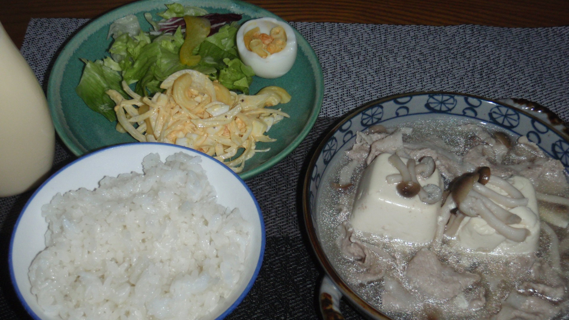 一昨日のちゃんぽんは、野菜高騰の折からカット野菜の袋を買って使ったので、カット野菜とは別に買ったタマネギ・ぶなしめじだけがダブついた。豚肉もちゃんぽん一杯分の少量では買えないので余っている。それとは別にしばらく前に4連の小さな充填豆腐を買っていたのだが、使うアテがないまま賞味期限が近づいてきた。これらを使って昨日のおかずを作ろうと思っていたが、昨日は書いた通り走ったらそれほどのものは必要なく、昨日書いた貧相な晩飯になった。今夜こそこれらの食材を使おう。豚肉と豆腐を料理白だしで煮込んでぶなしめじを加える。本当はこれを水溶き片栗粉で餡かけにしたいのだが、それだと料理白だしのすべての塩分を消費してしまうことになるので自粛する。余った食材のうちタマネギは煮物に使わなかったが、オニスラを作り水晒しして、卵を7分茹でるついでに残り4分はマカロニも一緒に茹でて、それらをマヨネーズと粗挽きコショウで和える。レタスは高すぎて買えないのでカットレタスを買って来て、レタスもエッグサラダも半分ずつを今夜消費する。昨日の夕食を貧相と書いたが、今夜もたいして変わらないかもね。