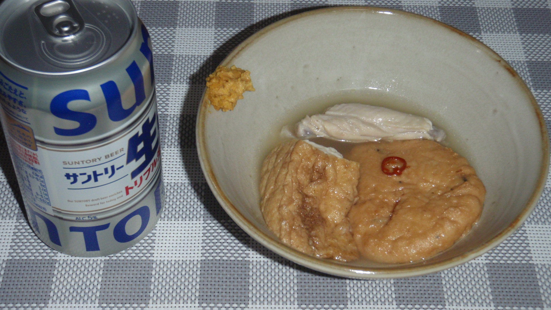 数日前におでんを考えたが作らなかったという話を書いた。無事大根も消費し終わったし、明日からの週末は冷え込むらしいので、今夜こそおでんを作る。おでんと言っても俺にも事情があるので、今回も練り物を買わずに、鶏の手羽中の半割と牛スジ串・厚揚げ・こんにゃく・がんもどきと、一袋が160円(税別)程度と安かったので春菊を買って来た。まずは大きな鍋に手羽中だけ放り込んで水煮しつつ、小さな鍋でゆで卵を作る。その間に味が染みやすいようにこんにゃくに切り込みを入れまくったり、厚揚げを切ったりして、ゆで卵のお湯で油抜きする。手羽中の鍋の灰汁を取ったらすべての食材(もちろん春菊以外ね)をぶち込み、料理白だし20ccと鷹の爪を放り込み煮込む。おでんを作るならば昼飯を買いに行ったときに決断して、昼から作り始めてやっと夜に浅いおでんを食えるが、今日は夕方から作り始めたのでとてもまだ浅い。そんな今夜は昼飯を食い過ぎたこともあり、それほど腹が減っていないので、お米は炊かずにそうめんを80g湯がく。汁は料理白だしで起こすが、春菊をその汁に潜らせ、おでんから味が染むのが一番早そうながんもどきを借りて乗せる。ラーメンを作ろうと思って火曜日に買ったカットネギがある。結局タイミングが合わずにラーメンは作れなかったが、このカットネギはそろそろ消費してしまおうと、今夜のにゅう麺に大量投入する。ご飯を炊かなかったこともあり。これでは少し足りないので、こんにゃくと厚揚げの浅いおでんを食って今夜は終了。