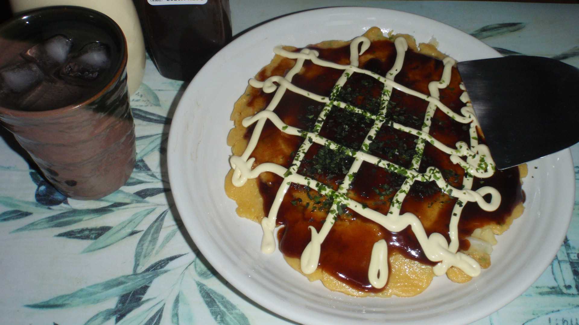 焼きあがったらお好み焼きソースとマヨネーズを掛けて青のりを振るが、青のりってどうしてこんなに食欲をそそる香りなんだろうね。
