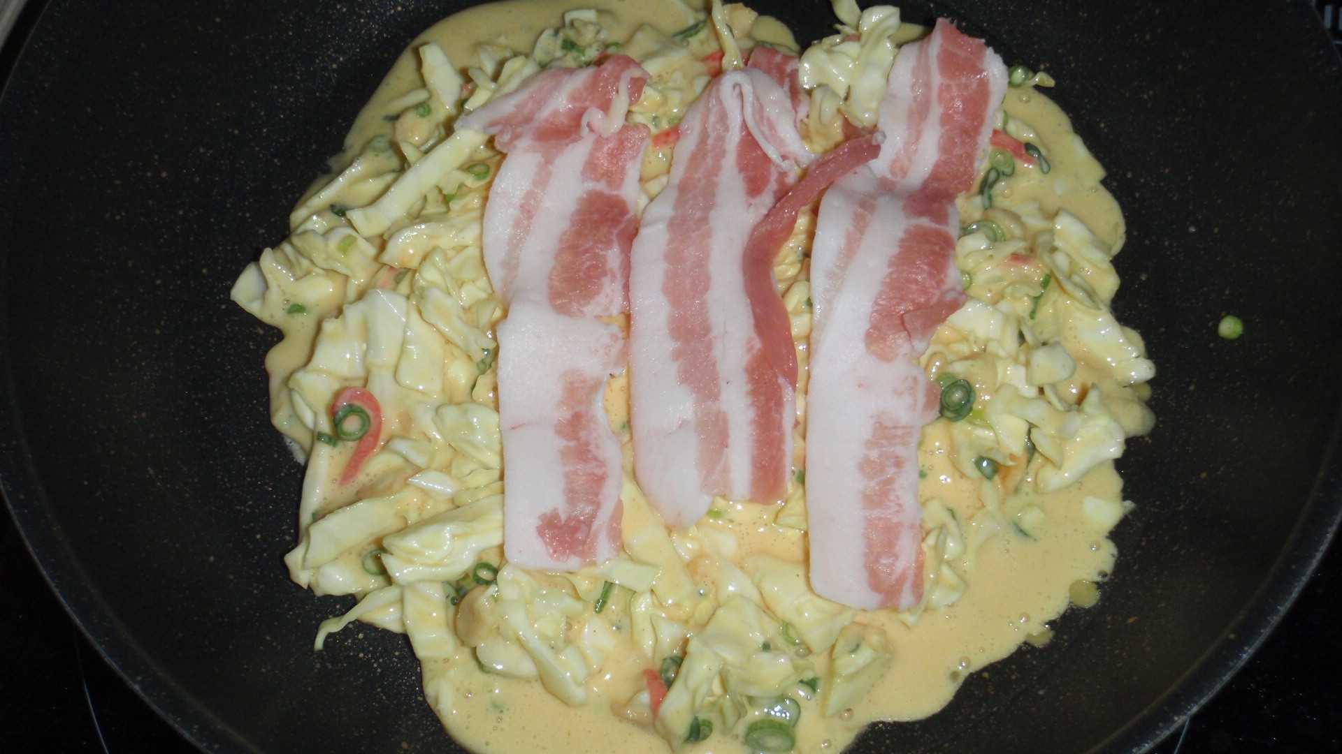 そういうわけで、お好み焼き粉80gを100ccの水で溶いて、キャベツとそろそろ使い切ってしまいたいカットネギ・紅ショウガ・揚げ玉に卵をぐちゃぐちゃ混ぜて、