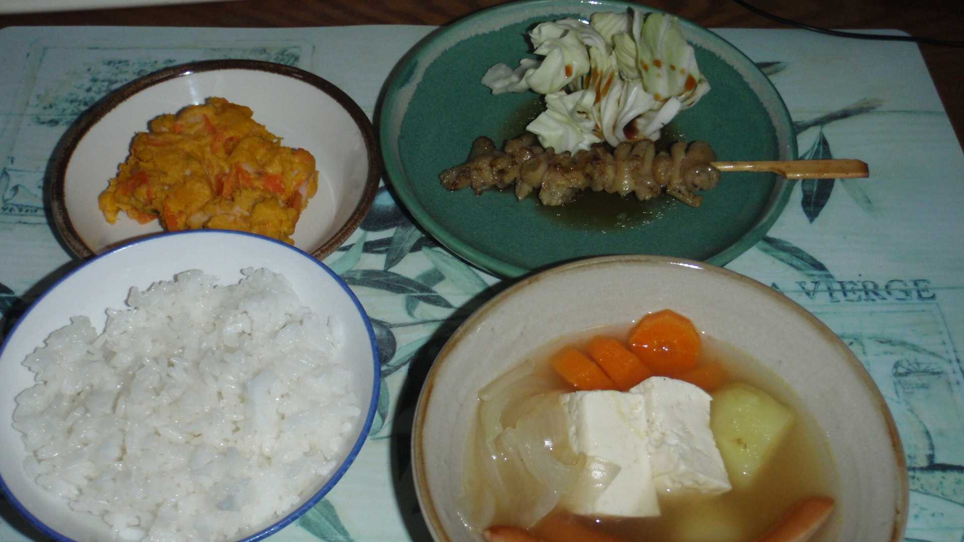使わなかった総菜の鶏皮をおかずの一品にしようと思ったが、2本までは必要なく1本だけを皿に盛った。残った一本は多分明日の酒のアテ。