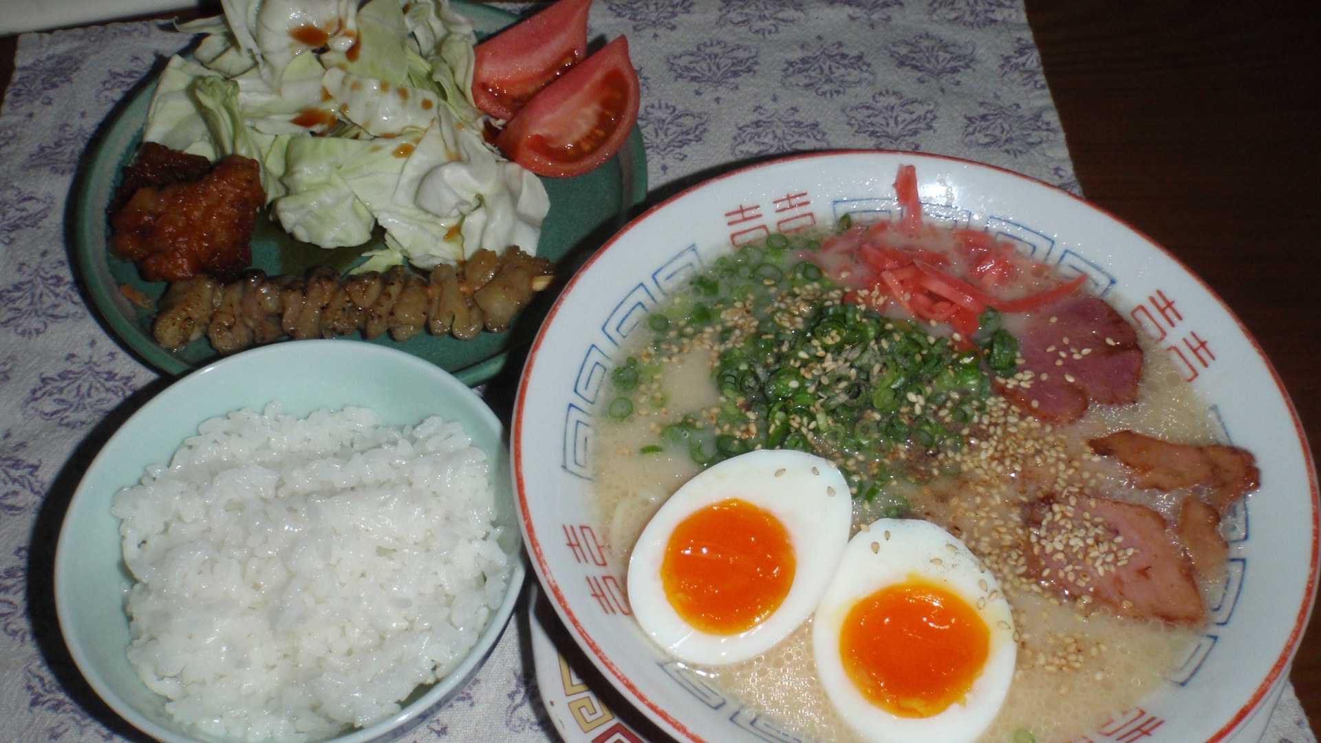 今夜はもちろんご飯を炊いて、ラーメンの具は叉焼と半熟ゆで卵に紅ショウガとネギゴマ。