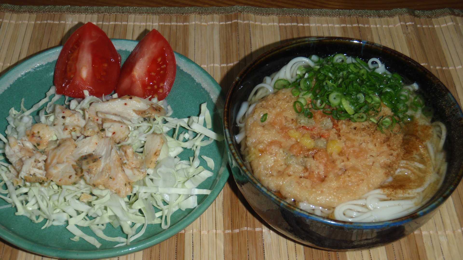 乾麺の五島うどん(そうめん並みの細さ)を100g湯がいて、雨が降る日は温麺だよなと既成品のエビ天と、消費に追われるので買ってはいけないカットネギを今日また買ってしまう。