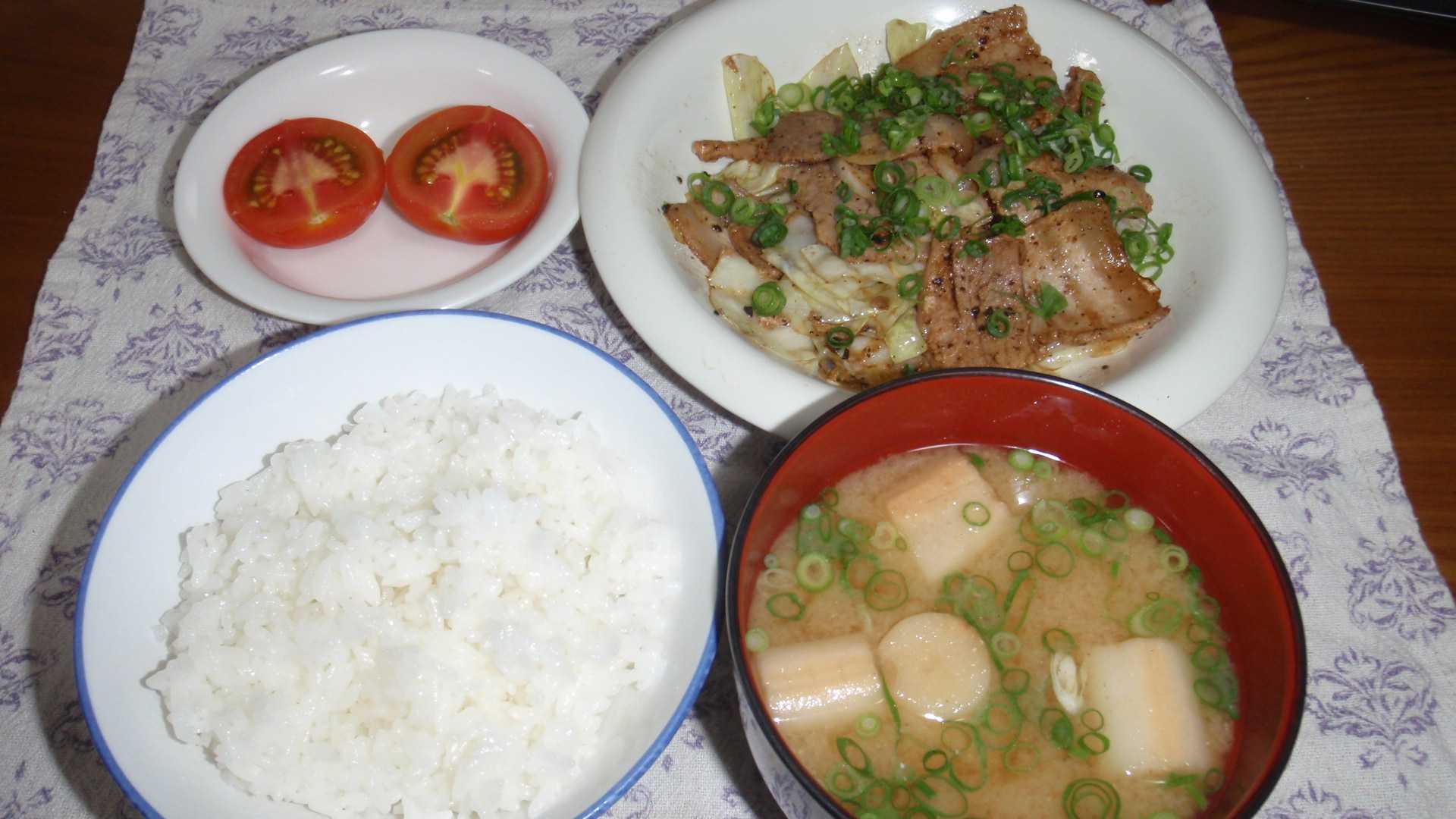 麩の味噌汁を作り、ここにもカットネギを散らす。