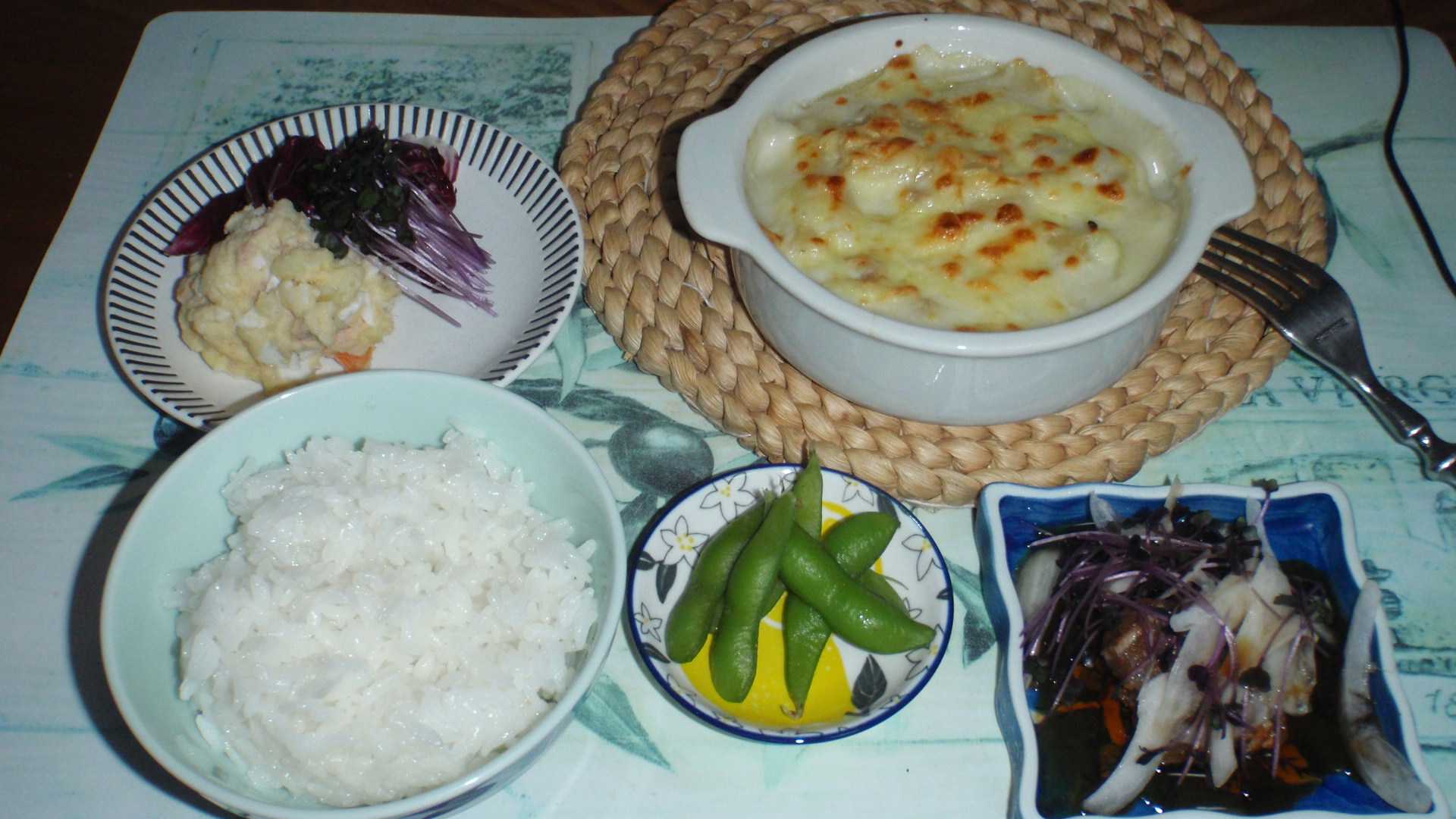 グラタンならば「今夜はご飯(お米)はないのか」と妹に聞いたら、「ご飯(お米)がない晩ご飯はありえない」とのことで、めでたくご飯(お米)にもありつけた。
