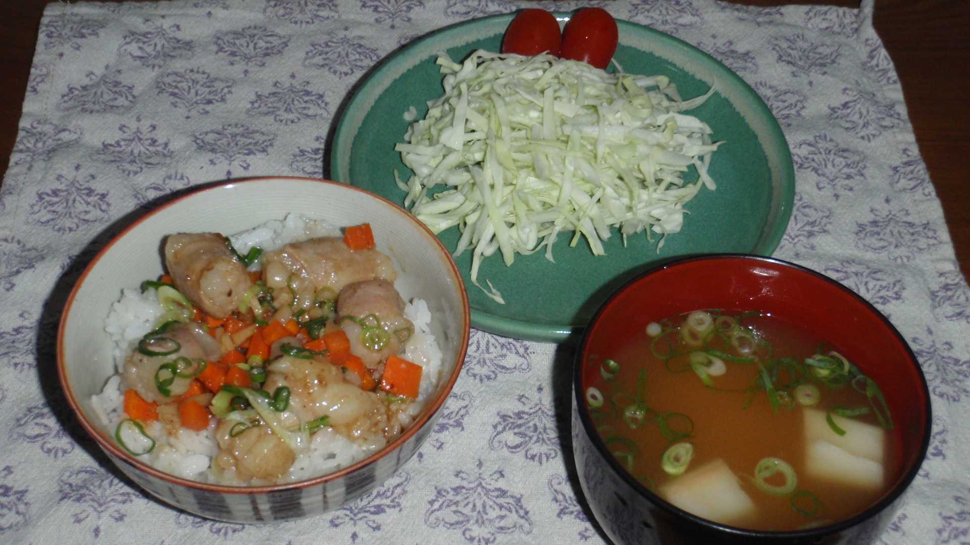炒飯ならばワカメスープを付けようと思ったが、丼ものなので慌てて麩の味噌汁を作る。