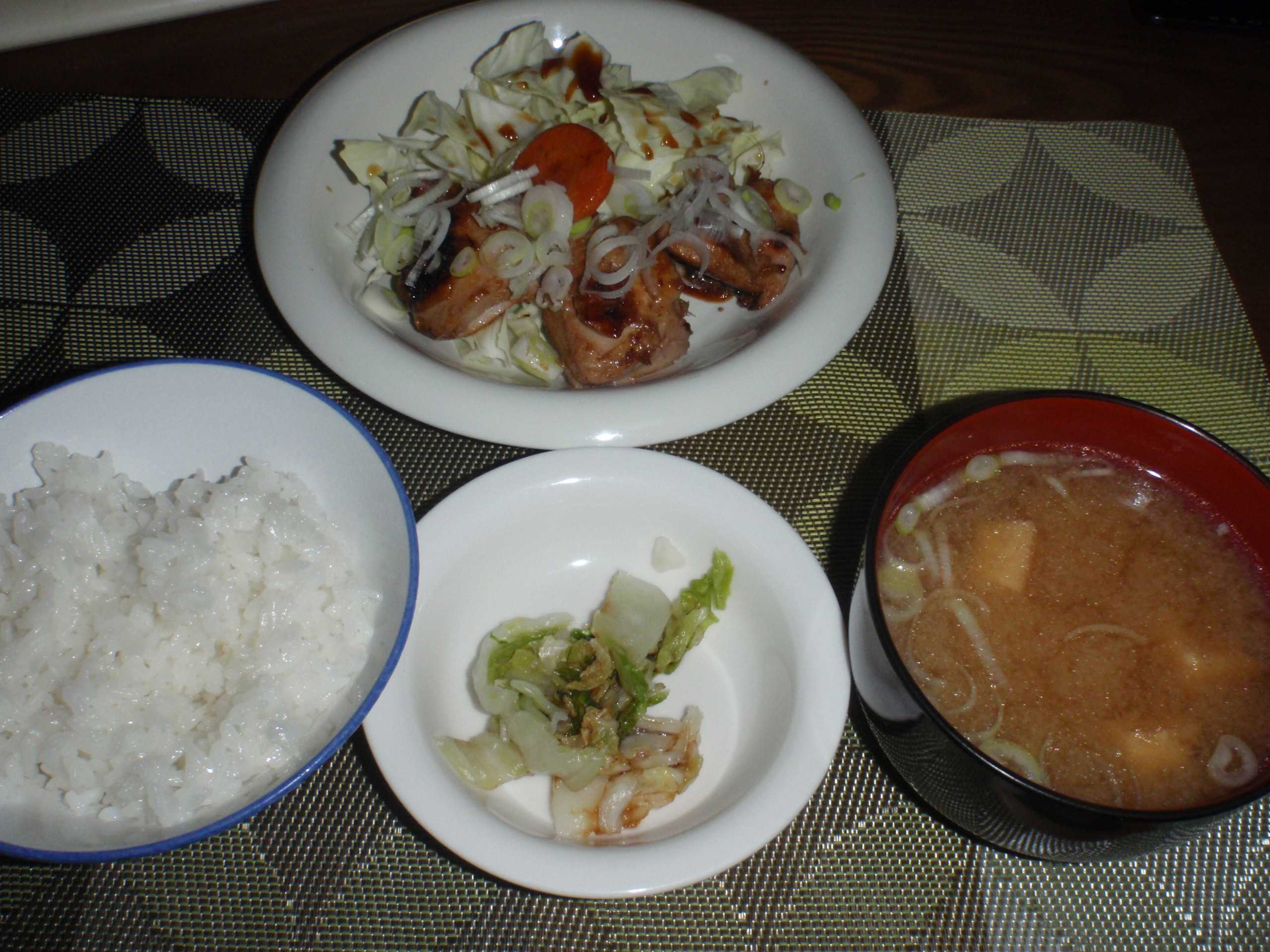 先日、豚肉の生姜焼きのためにしょう油:みりん:日本酒に生姜を摺りこんだ液を作って、豚肉の生姜焼きを2回作った。その液を捨てるのは忍びなかったので、昨日鶏肉のぶつ切りを買って来て、半分の3個を漬けていた。