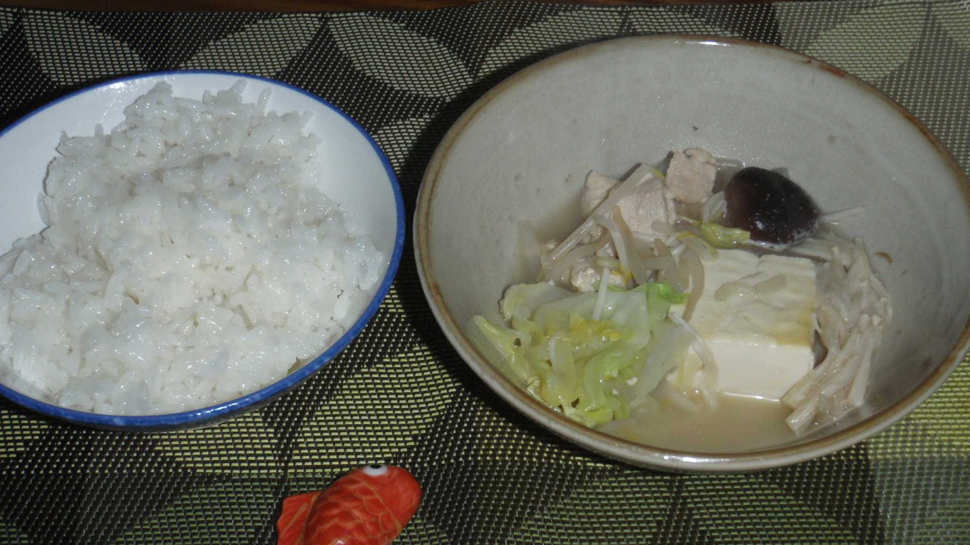 豆腐が半丁残っていた。というところから晩飯のメニューを考えるが、そういえば先日ちゃんぽんを作った時に、俺にも事情があるので粉末のちゃんぽんスープを半分だけ使い、半分は残していた。この残りの粉末スープもあまり大事し過ぎると湿気てしまうだろうから今夜使うが、全体で5.9gの食塩相当量の半分なので、今夜のスープは食塩相当量3gで計算する。