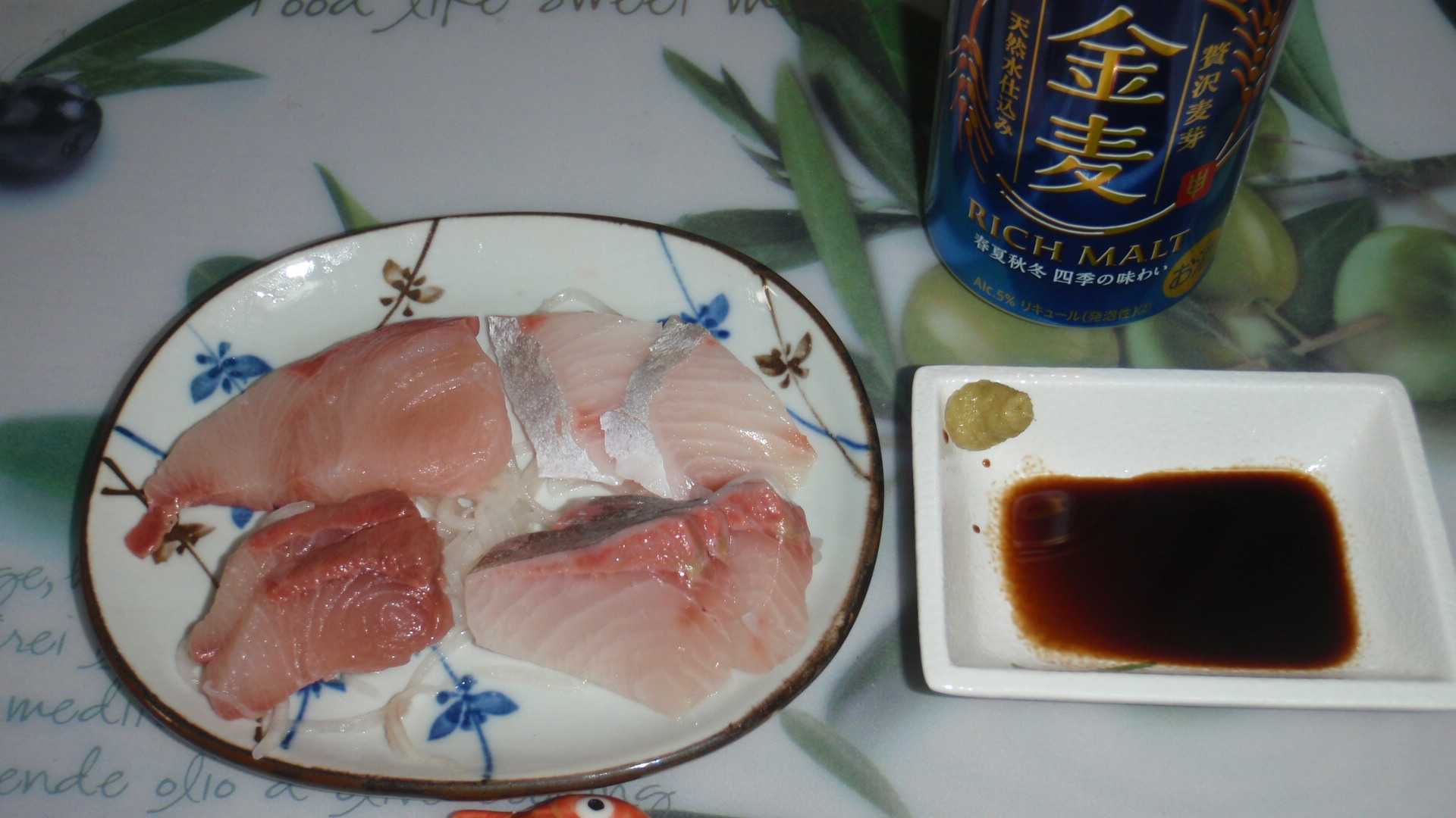 今夜は、昨日もらったブリとカンパチの刺身の残り半分で酒を飲む。今日は走っていないのでビールは飲めないが、今日の俺は頑張ったと思うので、発泡酒を買って来て、一杯目はそれを飲む。
