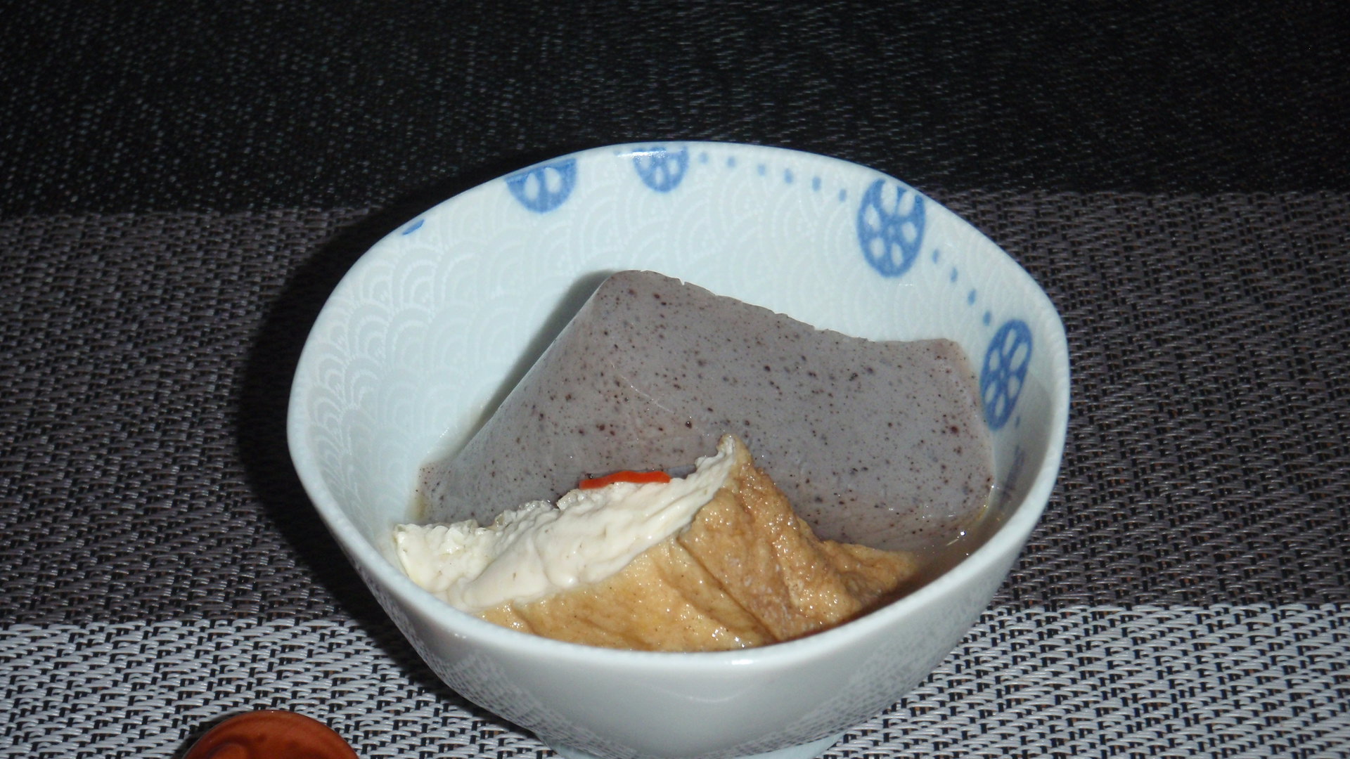 こんにゃくと厚揚げの浅いおでんを食って今夜は終了。