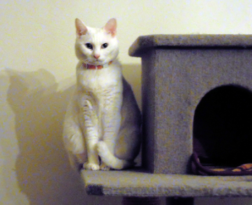 朝から おり君はせっせとグルーミングをしていました。背中をガシガシ噛んでから、舐め舐めまぁ 男の子とはいえ、そんなポーズで・・・それにしても やっぱり身体柔らかいですね。胸元は ちょっと舐めづらそう。なぜか耳がイカ耳~すぐ近くで写真を撮られていたけど、気にせず舐め舐めしまくっていました。 そんな様子をキャットタワーから眺めていたひなが、何か発見・・・「あそこで何か光っているわよ!」謎の光の正体は、私が持っていたカメラに乱反射した光でした。ひなの正面の壁に キラキラと光っていたみたいです。 今日は 近所の神社に初詣に行ってきました。3日なら人出も減っているかと思いましたが、参拝客の行列ができていました。参拝の後、屋台でお好み焼きと大判焼きの昼食(実は こちらが目当て)風があまりにも冷たかったので、すぐに帰ってきました。