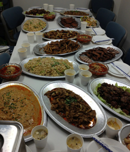 職場の近くにおいしい中華料理屋があります。とてもおいしいし、量も多いんだけど(ちょっと多すぎだけど)お客さん少ないようで・・・ とうとう閉店することになりました。閉店前に おいしい中華をいっぱい食べようということになり、特別にお願いして、大皿料理を職場にお持ち帰り~ で、ランチタイムが豪華中華パーティーに自家製チャーシュー棒棒鶏よだれ鶏水餃子スペアリブ香港風羊のクミン炒め手羽先の燻製じゃがいもの辛し炒め海鮮の塩味炒めカニチャーハン杏仁豆腐 仕事の都合で 全員一緒に席を離れることはできませんが、お持ち帰りすると 全員でワイワイ食べられます。それにしても すっごい量でした食べきれない分は家にお持ち帰り 夜にも食べましたよ。