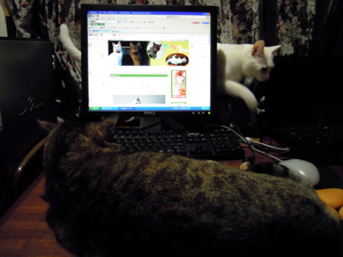 週末に模様替えをして、パソコンの位置を変えました。これまで壁を向いていましたが、窓に向かう位置です。 「今度は ここも歩けるのね いいじゃない!」べつに パソコンの後ろをの通路にしたつもりはありません。まぁ、別に歩くだけならいいですけど。おり君は、パソコンの場所が変わっても 相変わらずの定位置。キーボードの前で リストレストになっています そこへ パソコンの後ろを探検したひながやってきました「ヨイショッ・・・と!」 「うぁっ!」なんか まるでうん○の姿勢みたいですけど、違いますよそれにしても おり君がいるから 座るスペースないのでは ・・・と思ったのですが、無理矢理...「フゥ~ 座れたわ」 「コイツ なんなの?」狭いスペースに座りました。なんだかコレって...電車のシートのわずかな隙間に無理矢理お尻をねじ込んでくるおばちゃんみたい何か言いたげな顔をしていたおり君 黙って移動していました。