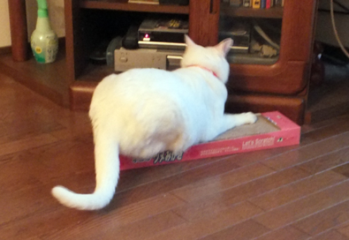 帰宅したら、ベッドの上に毛玉が吐かれていました・・・今までベッドの上で・・・ということはなかったんですけどね~。でも、吐き気は急にこみ上げるものだから、場所は選べないんでしょう。ベッドカバーしていたので、布団には被害はありませんでした。 被害といえば 爪とぎ被害も減りません。「ちゃんと ここでやっているわよ~!」こんなこと言ってるけど、フスマでガリガリする時の方が多いです。特に 人間が何かに集中している時襖などでガリガリして、気を惹こうとします。。。困ったものです