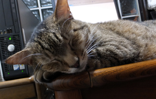 いつものように 私の後をついて歩き、私がパソコンの前に座り込むと、ようやくおり君も落ち着きました。そして、熟睡最初は 私の腕を枕にしてましたが、暑苦しいので そーっと腕を抜いたら、自分の腕枕で寝てました基本的に マクラがあった方がいいようです。 一方のひなは、近くの出窓で全開ですそんなふうに身体をねじって、寝れるんでしょうか まあ、いつもいつも こんな格好でいるわけではなく、この間 ようやく猫らしい格好で寝ているひなを撮れました近づいて カメラを向けたら 薄目を開けてしまいましたが・・・ひなは、基本的にマクラ不要みたいです。