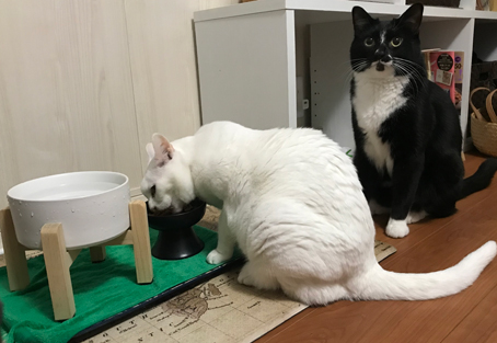 ひなちゃんが食べているそばで じっと順番待ちのれん。