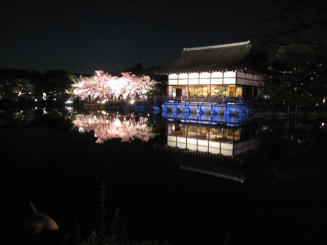 本日も夜桜見物へ 宝石箱の ふたを開けたような 上質の お砂糖菓子のような 甘く 眩く煌めくその空間を やさしく見守る ほぼ フルムーン♪ 月影落とす神苑の水面 鏡面のごとき この手に掬えそうな 双月 いと美し♪