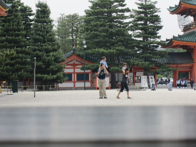ひと月ほど前に どこかで見た印象に残る光景。。 それは、砂ぼこりの舞う砂利で遊んで ストラップの付いた他所行き用の靴を汚してしまった幼い子があからさまに頬を打たれて泣きじゃくって居る様子だった。まだ甘え盛りの子の差し出す手に気づかす辺りの風景をカメラに収めることで精一杯の保護者たち。 良いお洋服を装い、家族そろって何処かへ出掛けることは、幼い子にとって大きなイベントなのではないだろうか?でも、この時は明らかに違っていた気がした。 安全って何? 豊さって何? 幸せって・・・ 今の世の中のひずみを垣間見た瞬間のようにも思えた。 そんな中、 最近見かけることがなくなっていたような・・懐かしいような・・微笑ましい・・ そんな光景が そこには 在った。 肩車 お父さんだけでなく、お母さんもしているとは♪流石♪ 今日の日に感謝♪