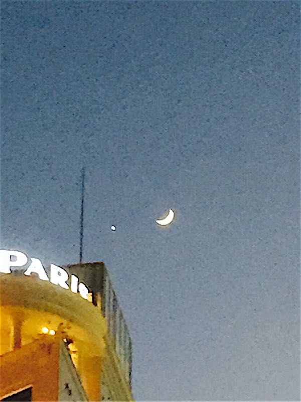 皆さんこんばんわ、 お元気ですか? 新しい年になって、2日目 今夜、夜空を見上げたら、 綺麗な月と星が… 三日月と金星だそうです… パリに行ったわけじゃないんですよ… 銀座の街を歩いてて見上げたら、綺麗な月と星 が、思わず携帯で写メを… ブログの皆さんのメッセージにも、書いてくれ てた方がいらっしゃいましたが…^_−☆ ✨星に色々な願いを✨…^_−☆ そして、 【☕️マーサーブランチ】と言うお店でカフェを 久しぶりにフレンチトーストを食べましたが… これが、又、美味しかったです…^_−☆