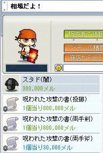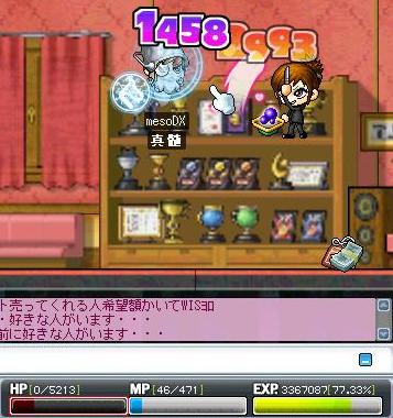 どうも~もうちょっとで3次転職なのでウハウハのつ旦ですこんにちはw@7Lvで3次職業ですよ~(ノД`*)これは廃狩りするしかないですね(゚∀。)(ぇどうせ~受験もショボイ所なんでいいかなぁ~と思いm―⊃)'д`)・∵.アベシと、言う事で廃狩り開始します(ノ゚Д゚)八(゚Д゚ )ノウェーイんで結局お茶の方のLvを上げる事になりましたb('A`)ヴァー最近斧の書を転売する人が増えてきてるようです。( ´_ゝ`)人気下げていいですか?ダメデスカ、ソウデスカ。両手斧の書30%をまとめて560kで売っている人がいましたよ・・・殴っていいですか?ダメデスカ、ソウデスカ。で、相場が気になったんで調べてみました。大体売れてるのは30%は100~150k70%は50k60%は150kって所ですかね560kとか誰も買ってないみたいですwΣ(゚ω゚`;ノ)ノ両手斧30%30kで売ってました。速買いましたよ~(*´Д`)世の中両手斧30をこんなに安く売ってくれる人も居るんですね(TдT)ヤヴァイです。書くこと無いです。(´Д⊂ヽあ・・・そうそう久しぶりにメソのLvが上がりましたよ(ノ゚Д゚)八(゚Д゚ )ノウェーイまぁ・・・元々97%まで貯まってたんですがね('A`)ヴァーもう書く事無いので日記終了( ´_ゝ`)ノッ