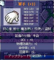 どうも~つ旦です( ノ゚Д゚)こんにちわ昨日もサブ育ててました☆-(ノ゚Д゚)八(゚Д゚ )ノイエーイ現在のステータス。。。↓これで1630ダメ行きましたbJたこ焼き無しb装備は全て命中装備b武器はこんなの↓30%1回70%2回60%1回成功したものです(*´Д`)b斧の書60%が売ってないので中途半端な強化に・・・orz@はメインのお下がりを装備しています・・・命中軍手は変りましたけどね☆-(ノ゚Д゚)八(゚Д゚ )ノイエーイ(´・ω・`)命中軍手なんて適当でいいもん・・・攻撃軍手が強ければそれでいいもん!!と、誰も居ない所で呟きながら強化して出来上がったのが↓(ノ゚Д゚)八(゚Д゚ )ノイエイエエイイエエイエーイうはうは気分で狐狩りをしていたらシュウ様出現σ(・ω・´)のペット(狐)達が瞬殺されてます。シュウ様&ハスキーVSつ旦のペット(狐)(;゚Д゚)コン(ペットの名前)ーーーーーーーーーー;;(注:コンバット男ではありませんまぁペット(狐)なんてすぐ沸くんでいいや♪って事になりまして。シュウ様に沸かしてもらい一緒に狐(ペット)狩りしました(*´Д`)bおまけやっちゃったよこの人(ノД`*)まだ深夜じゃないのにやっちゃったよw