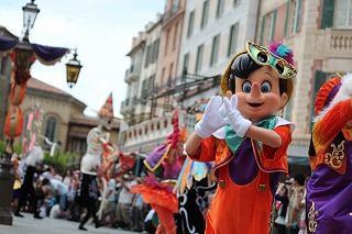 【ネタバレあり】東京ディズニーシーのハロウィーンショーの見どころはココ!タートルトークのくじら語というのは知ってましたがTo-ru-ke・・・ N-to-ru-ke・・あれ、スケルトン語だったんですねぇ。ディズニー・ハロウィーンのサイトに『おばけとスケルトンのわくわく日記』が載っていてよく考えられているなぁと感心しながら読んでいるんですが前に、ハロウィーンのCDを聴いてストーリーが分かったんですがだから、スケルトンがゴンドラに乗ってたんだとか「ア・・・ア・・・アリガトウ」「シ・ア・ワ・セ! ト・モ・ダ・チ! シ・ア・ワ・セ!」って、言葉にはこんな想いが詰まっていたのかぁとかちょっとジーンときてしまいますます、観たくなりました。なんでも、バックストーリーを知るとぜんぜん、味わいが変わってくるものですね。わくわく日記 ちょっと転載してみますね。はじめまして、わたしスケルトン。イタリアはヴェネツィアのとっても近く“墓場の島”に住んでいるの。わたしも昔は、人間だったことがあるのよ。今でも時々思い出すわ・・・当時わたしはヴェネツィアに住んでいて、お祭りの日には太陽の下で歌い踊り輝いたもの。 あの時のシアワセな気持ちを、もう1度味わいたいな。でもそんなことは夢のまた夢。だって私はスケルトンだから・・・今日、ミッキーから素敵なお手紙が届いたよ。ディズニー・ハロウィーンのカーニバルに遊びに来ないかだって! なんてすばらしい!・・・でも私みたいなスケルトンが突然現れたらみんな怖がりやしないかな・・・?ミッキーからのカーニバルへのご招待。すごく悩んだけれど、自分の気持ちにうそはつけないや。船に乗りこんで、東京ディズニーシーへいざ出発!思えば、ミッキーとはじめて出会ったのは、墓場の島の美しい月夜だった。 彼は、私たちをちっとも怖がらなかったんだ。「もう一度、太陽のもとで カーニバルに参加したい。」 あの日の私たちの願い、ミッキーは覚えていてくれたんだな…やっぱり!恐れていたことが、起こってしまった。 ハーバーに着いた私たちは、にぎやかな音楽にひかれて、恐るおそる人間たちの前に姿を現したんだ。 そうしたら、みんな私たちの姿にびっくり!怖がったり、怒る人まで現れて・・・ ああ、人間とスケルトンが仲良くなることはできないんだろうか?カーニバルの場所の取り合いで、にらみ合い、ののしり合う人間とスケルトン。あたりには、恐怖や憎しみ、そして悲しみの空気が満ちていたんだ。そんなとき、一筋の光のようにミッキーの声が! 「怖がらないで、みんな仲良くしなくっちゃ!こころのトビラひらこう。みんな友だちさ!」ミッキーのひと言で、いがみ合っていた人間もスケルトンも、はっと目が覚めたんだ。気がついたら、私たちスケルトンは笑顔になっていたんだよ。すると、人間のみんなが、素敵な笑顔だねってほめてくれて・・・ 私たちは、すっかり心を通わせられたんだ! 最高の気持ち。ああ、ここへ来てよかった!ミッキーや人間たちとのカーニバルタイムが、あんまりにも楽しくて、私たちの口からつい出てきた言葉。 「ア・・・ア・・・アリガトウ」 はじめて人間語をしゃべっちゃった!今までスケルトーンしか話せなかったけど、人間の言葉で感謝を伝えたかったんだ。「シ・ア・ワ・セ! ト・モ・ダ・チ! シ・ア・ワ・セ!」ハロウィーン・デイドリーム (ミッキー広場)