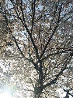 実家の家の前の桜の木を見上げ