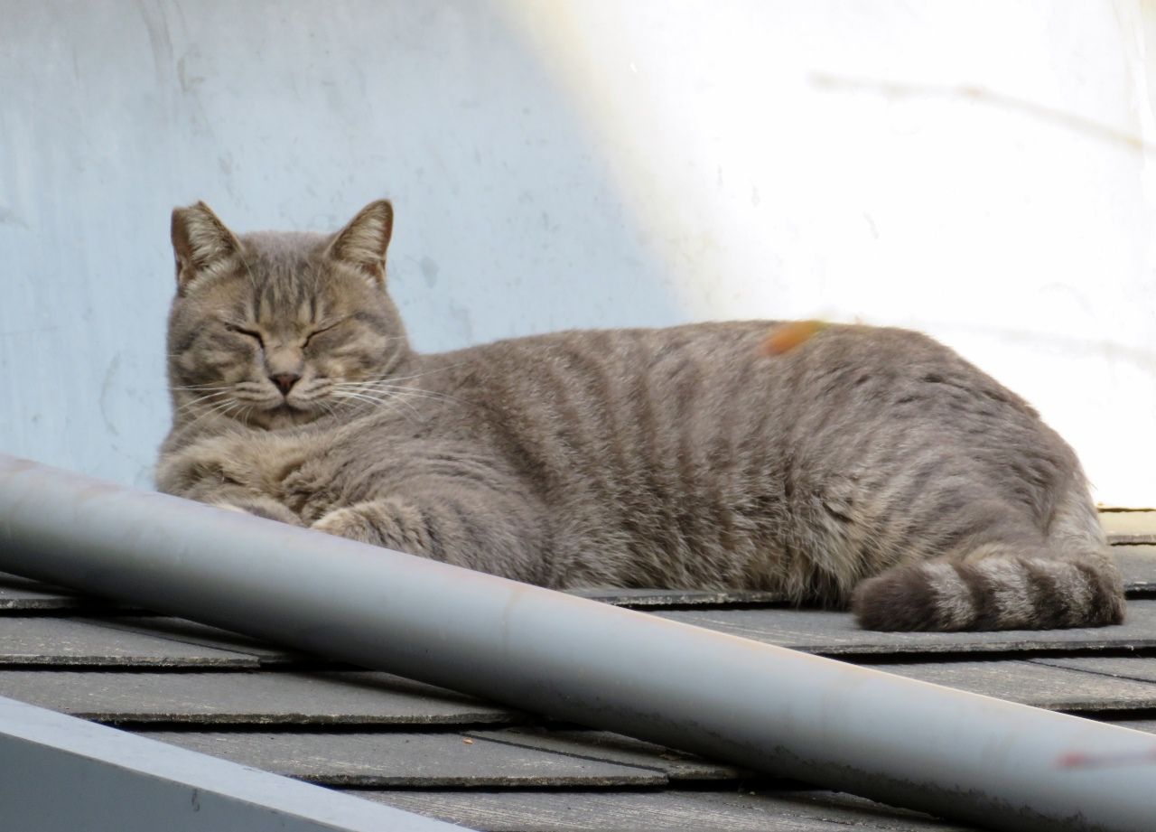 キジシロが下りたのと入れ替わりに、屋根に上って日光を身体一杯に浴びた後、寝そべっておりました。