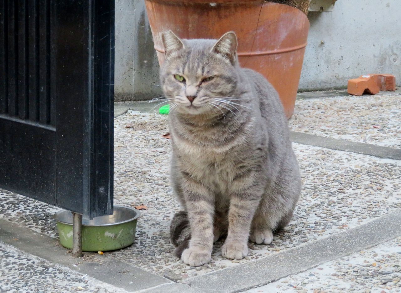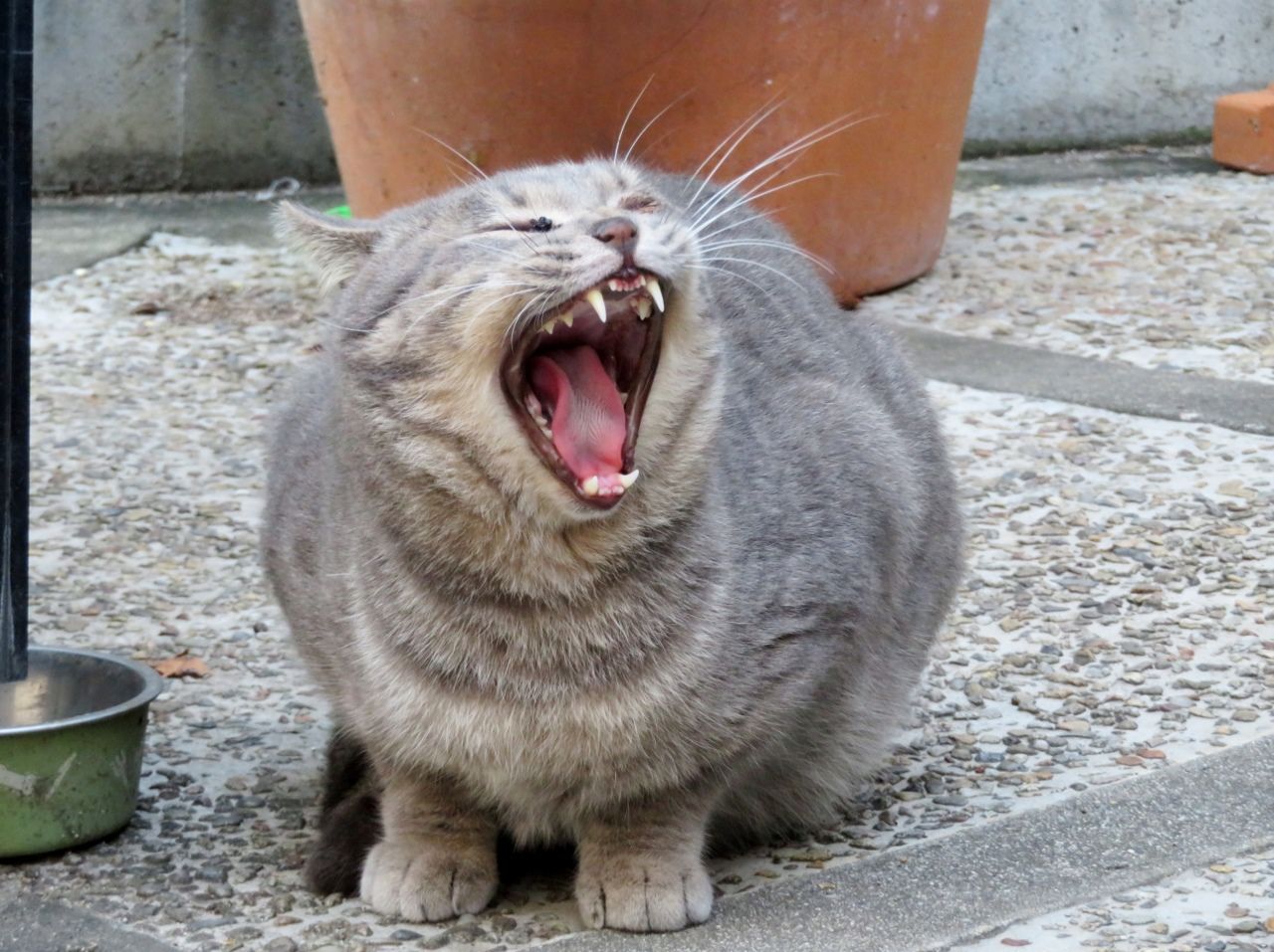 門の後ろで丸まっていたグレートラに、ガンを飛ばされたのですが、大きなあくびをした後、「フッ、今のは見なかったことにしてくれニャ!」という微妙な表情を浮かべておりました!?(笑)