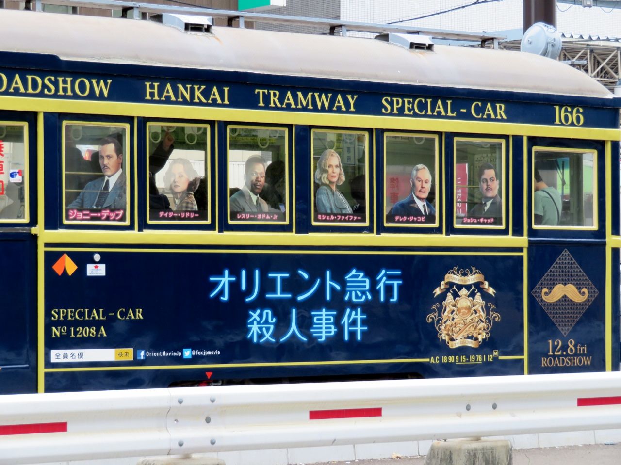通勤・通学時や有名な住吉大社へ行く時、多くの人が利用する阪堺線(はんかいせん)という路面電車の車両が、公開される映画の広告で覆われておりました。(映画配給会社の回し者では、ありません。(笑))